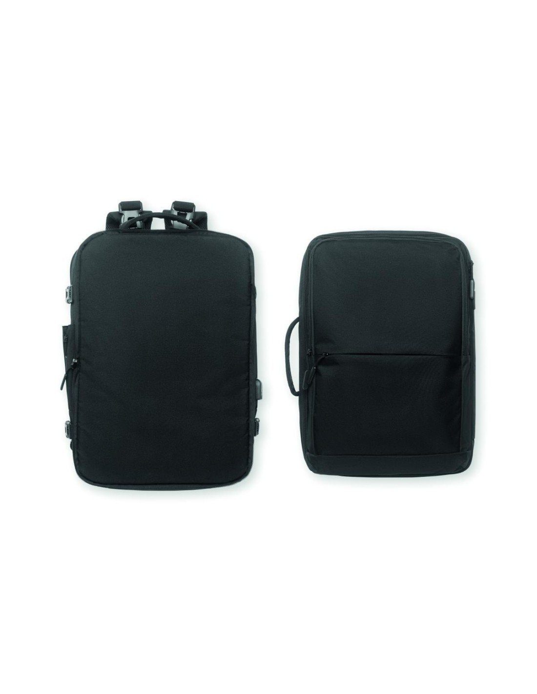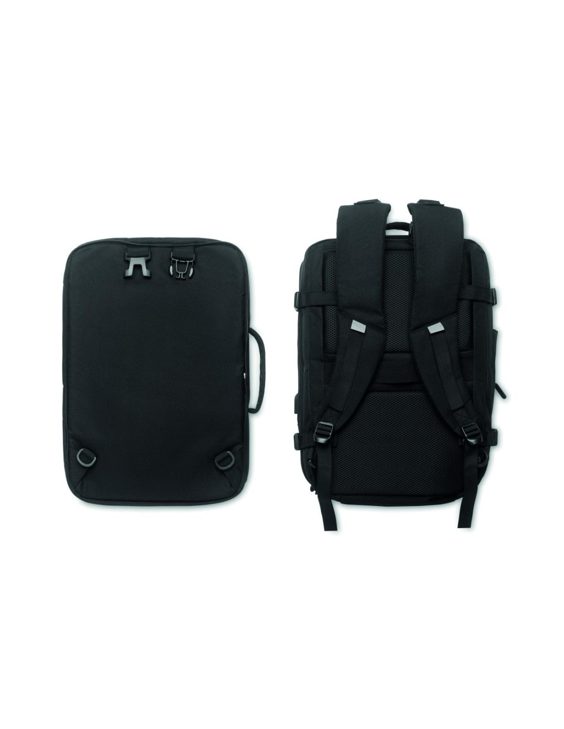 Mochila Travel Tech de poliéster 600D RPET. Modular / incluye varios compartimentos.
