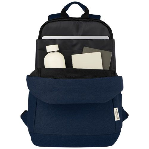 La mochila antirrobo , compuesta por lona reciclada GRS y forro GRS RPET, cuenta con una funda específica para tableta y un compartimento acolchado para portátil de 15,6". La mochila también tiene un bolsillo de malla y bolsillos organizativos en el interior para mantener el contenido bien ordenado, 2 bolsillos laterales para agua, un bolsillo delantero con cremallera y un bolsillo oculto en la parte trasera para un acceso fácil y seguro en cualquier lugar. La placa metálica decorativa puede hacer brillar un logotipo gracias a su acabado sutil y mate.