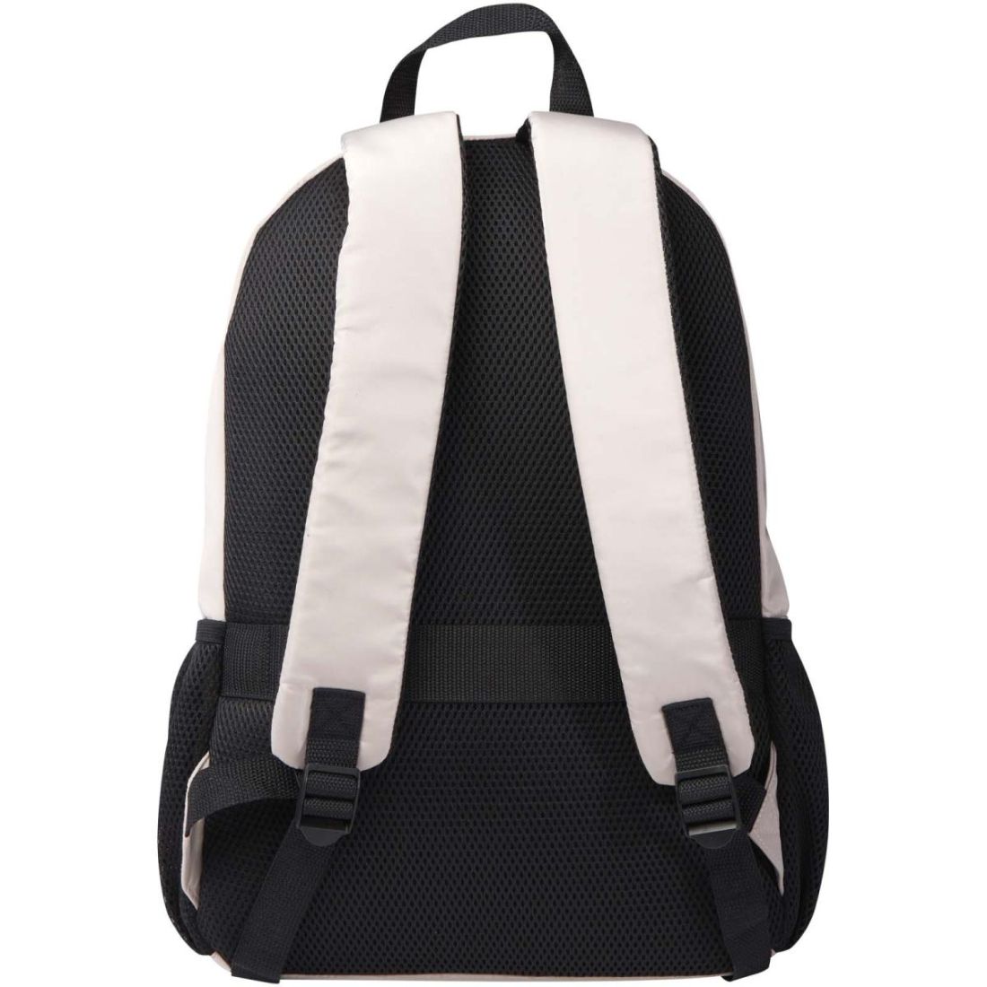 La mochila está confeccionada con tejido reciclado suave y resistente a las arrugas con certificado GRS y forro de RPET de calidad. La mochila cuenta con un compartimento para portátil de 15", un compartimento organizador, bolsillos delanteros con cremallera, bolsillos laterales de malla elástica y parte trasera de malla de aire con una correa para trolley. Correas de hombro ajustables para una comodidad óptima. Capacidad: 20 litros. Resistencia para hasta 10 kg de peso. Sin PVC.