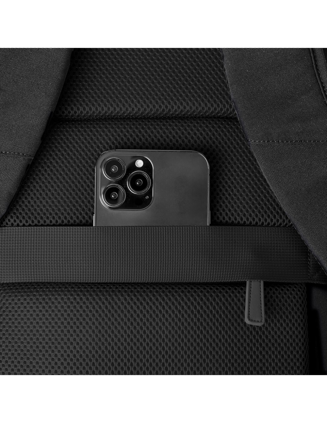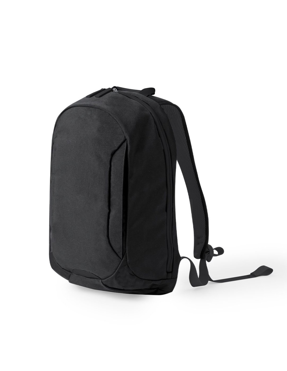 Mochila fabricada en resistente poliéster, dotada de cierre de cremallera de doble tirador y un bolsillo frontal. En su interior, dispone de compartimento acolchado para portátil hasta 15 pulgadas y compartimento para tablet de hasta 10 pulgadas. En el exterior, cuenta con un bolsillo frontal de acceso rápido y otro oculto en la espalda acolchada para guardar objetos de valor, incorporando una cinta para fijarla a las maletas. Sus esquinas reforzadas aportan durabilidad, e incluye asa de transporte, con elegantes accesorios en tono negro. Las cintas de hombros y la espalda son acolchadas y ajustables para mayor comodidad. Presentado en una bolsa individual reciclada.