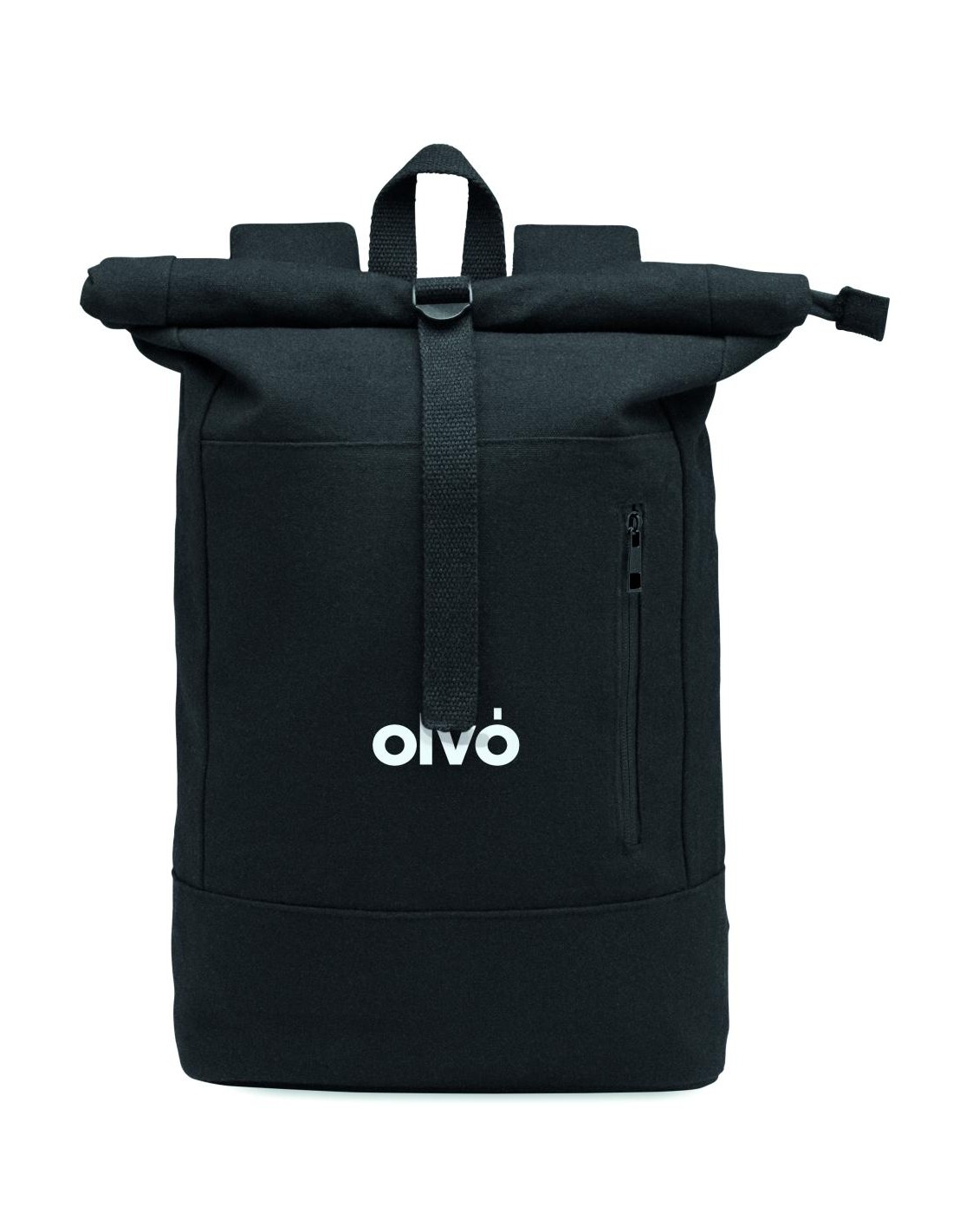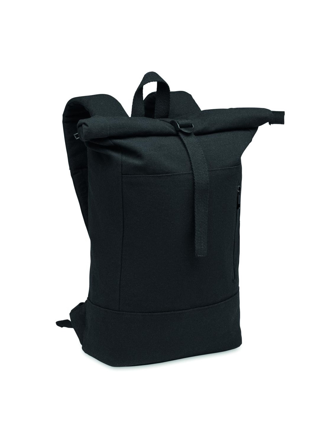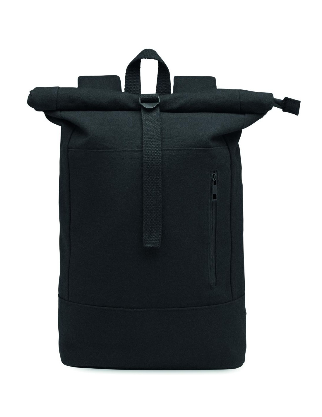 Mochila con cierre rolltop con cremallera para portátil de 15'', de algodón reciclado preconsumo y poliéster reciclado (70%/30%). Bolsillo frontal con cremallera. Espalda y hombreras acolchadas. 340gr/m².