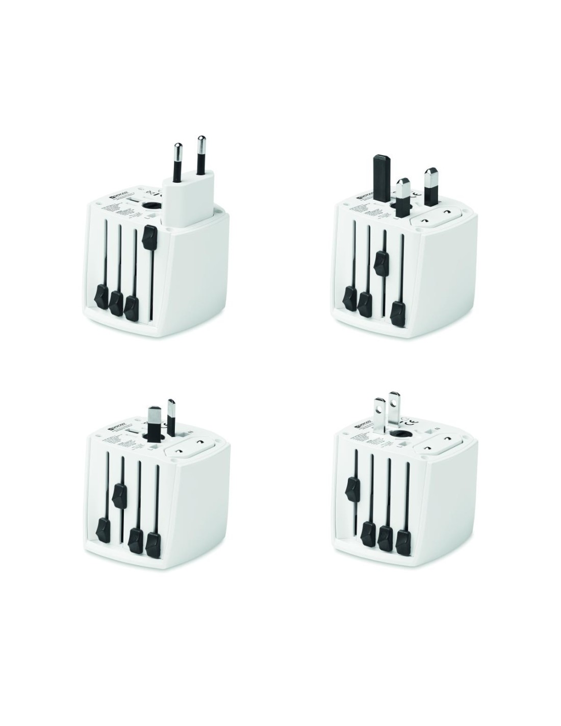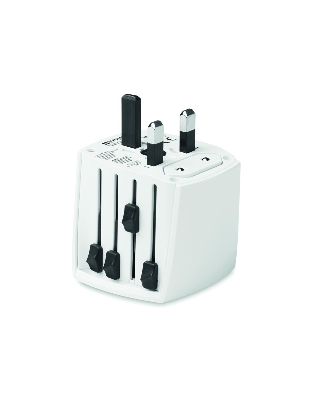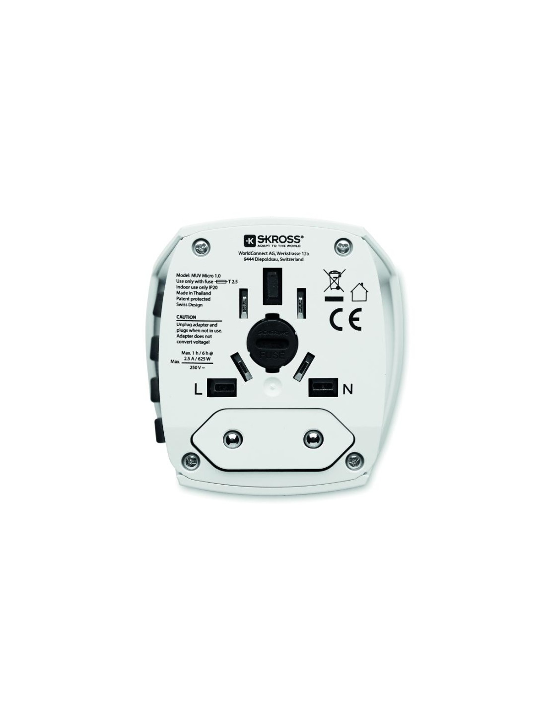 Adaptador de viaje universal SKROSS. Conexiones aptas para Europa, USA / Japón, Australia / China. Adaptador de 2 polos, sin toma de tierra. Cumple con todas las normativas internacionales de seguridad. Seguro para los niños.