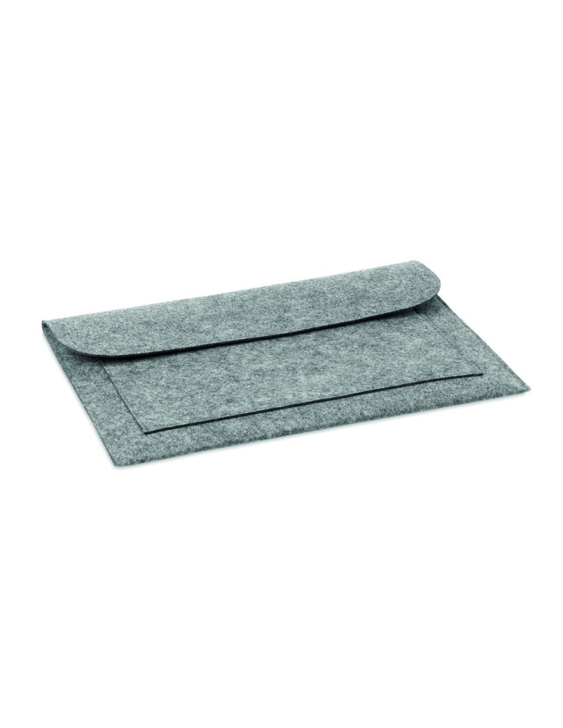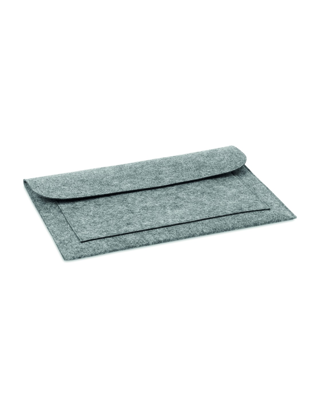 Porta documentos de RPET felpa de 2 mm de grosor, con bolsillo en el frente y cierre de velcro. También puede usarse para ordenador portátil de hasta 15''.