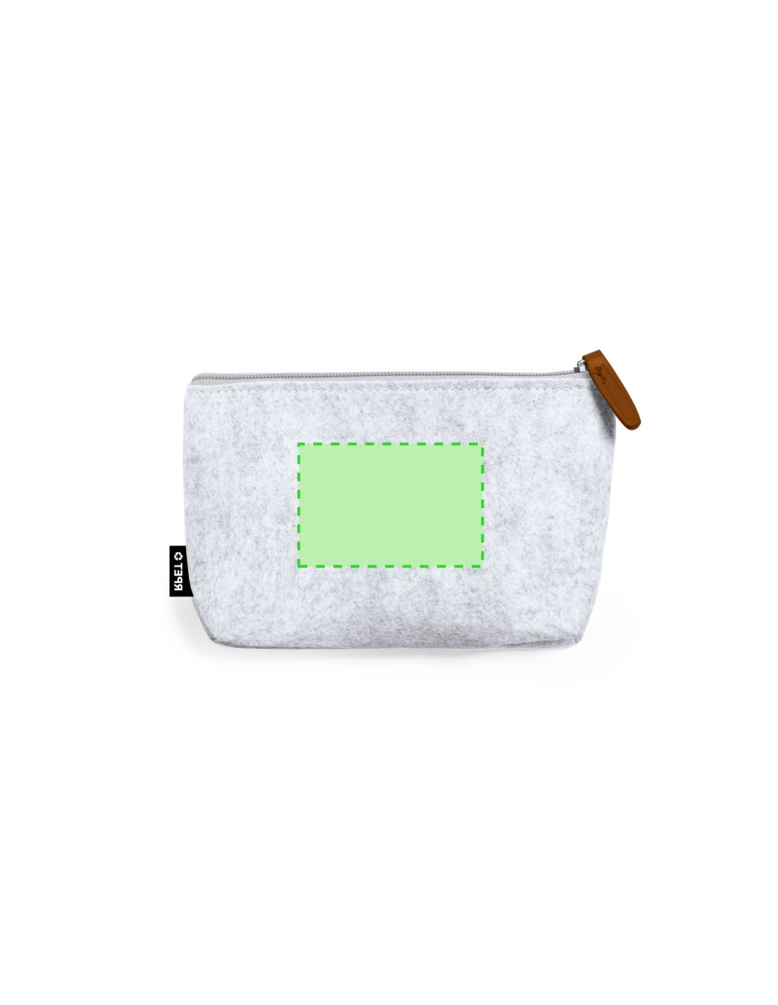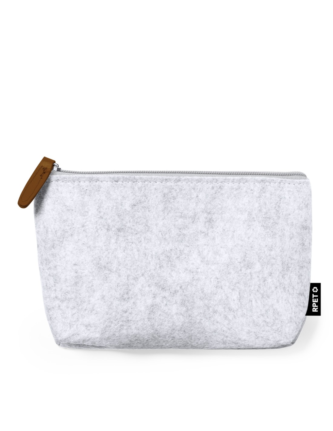 Estuche de línea nature elaborado en resistente fieltro RPET. Compartimento principal con cierre de cremallera a juego y original tirador de polipiel en tono marrón. Con etiqueta RPET en exterior. El fieltro RPET es fruto de la combinación del proceso de reciclaje de materiales plásticos junto con la técnica milenaria de fabricación del fieltro, dando como resultado un material de eco-tendencia que, además de ser de origen reciclado, también se convierte en reciclable.