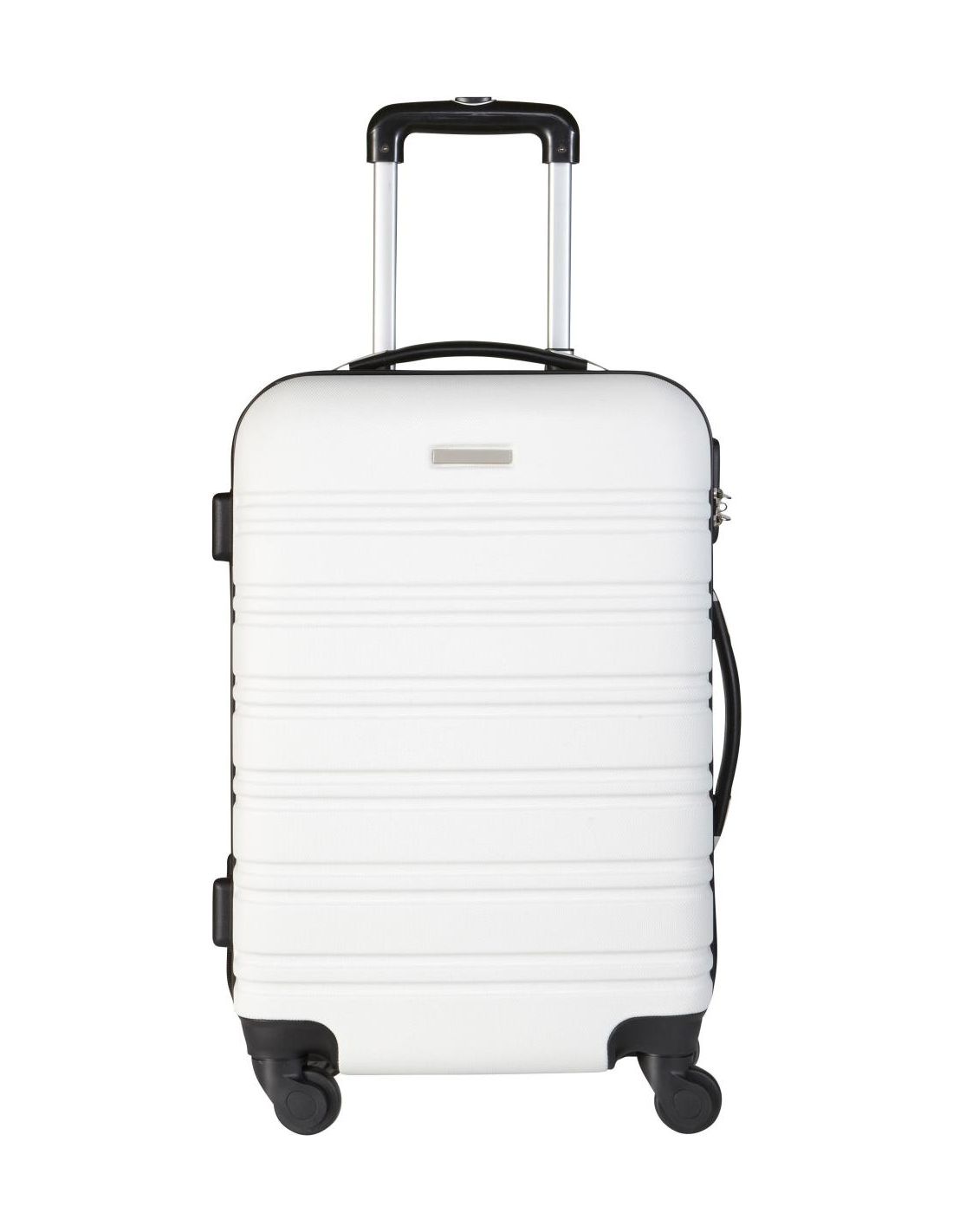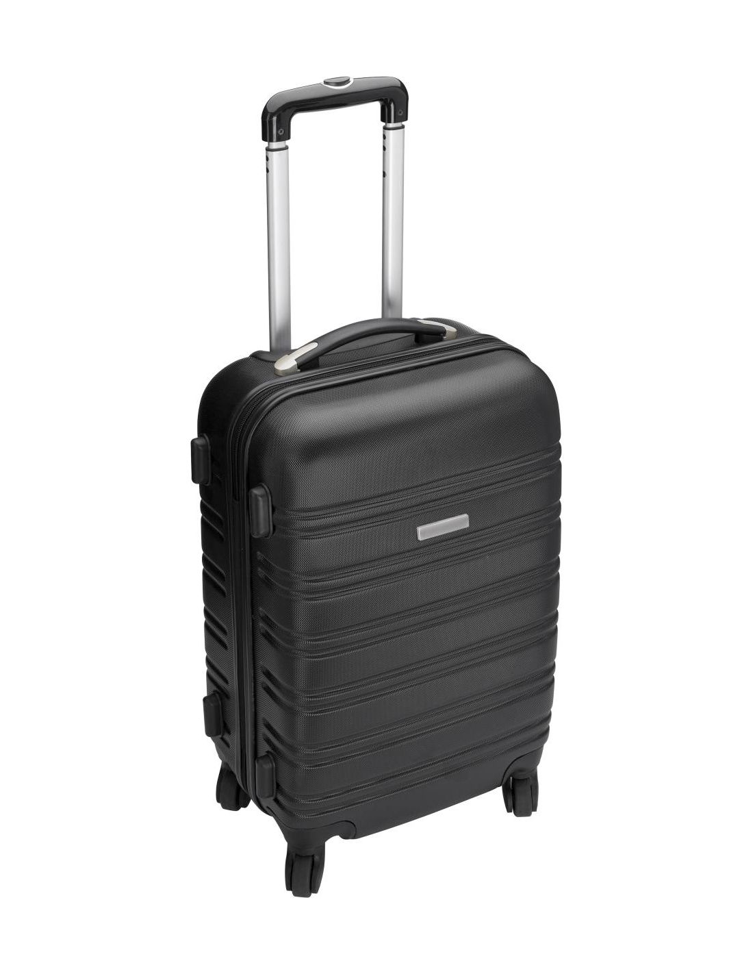 Trolley rígido de ABS con 4 ruedas giratorias, asa extensible y candado numérico incluido. Incluye placa de metal para la personalización.