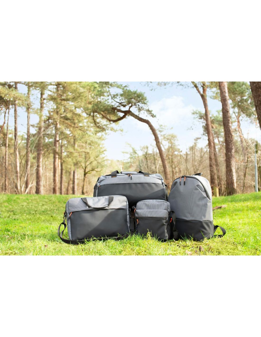 Bolso bandolera bicolor de 500D. Bandolera ajustable con detalles de color. Pequeño bolsillo frontal con cremallera. Gran compartimento superior co…