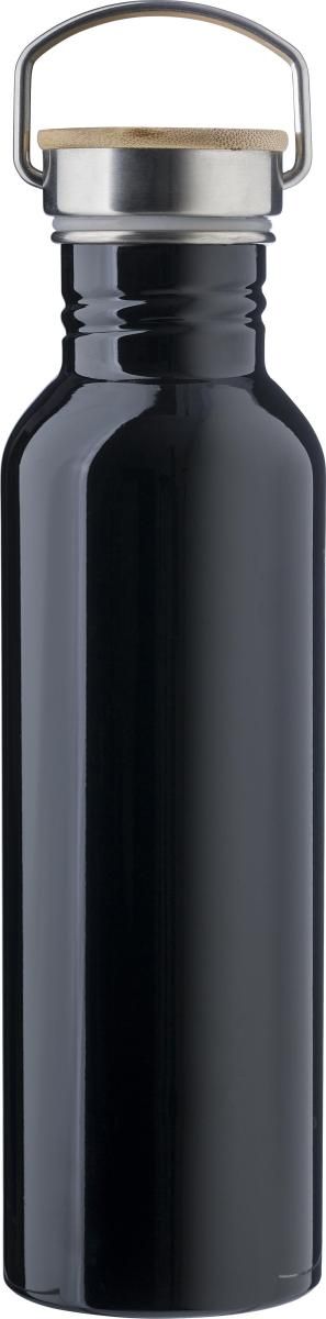 Botella de acero inoxidable s/s304 (700 ml) con tapón de rosca con aplicación de bambú y asa. Recomendable para uso de agua fría. Evitar bebidas ácidas o con gas.