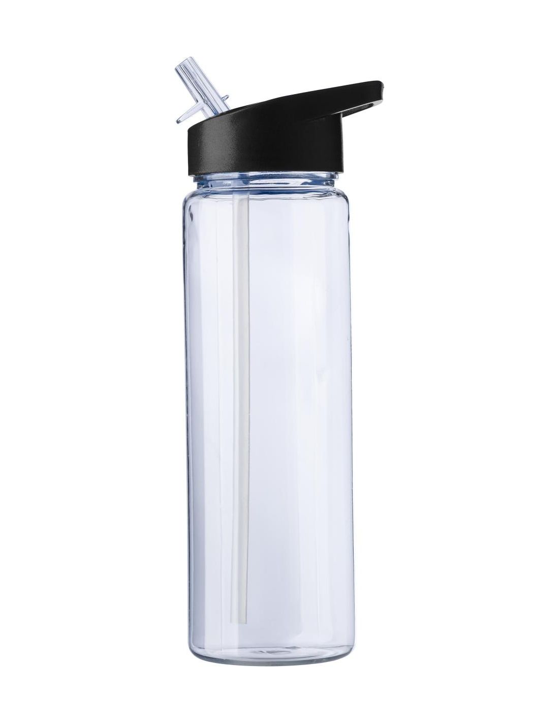 Bidón de rPET (750 ml) con pajita plegable en la tapa. Recomendable para uso de agua fría. Evitar bebidas ácidas o con gas.