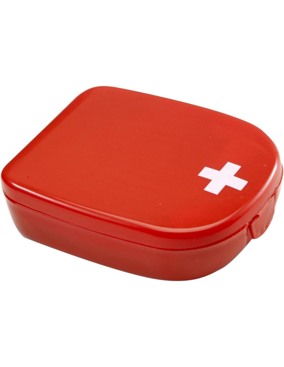 Botiquín de plástico. Contiene 2 tiritas, 2 toallitas impregnadas de alcohol y 1 toallita desinfectante.