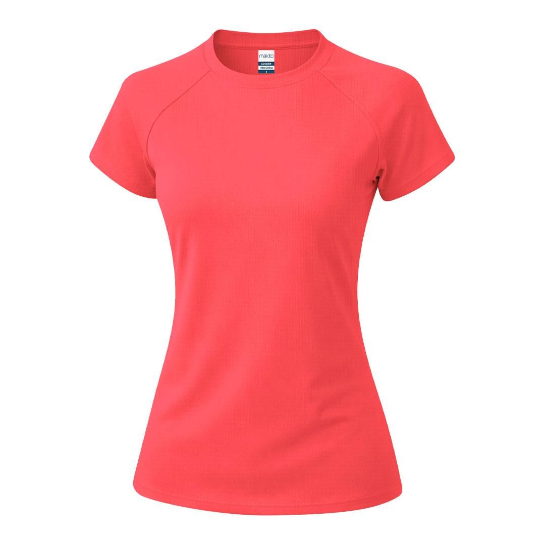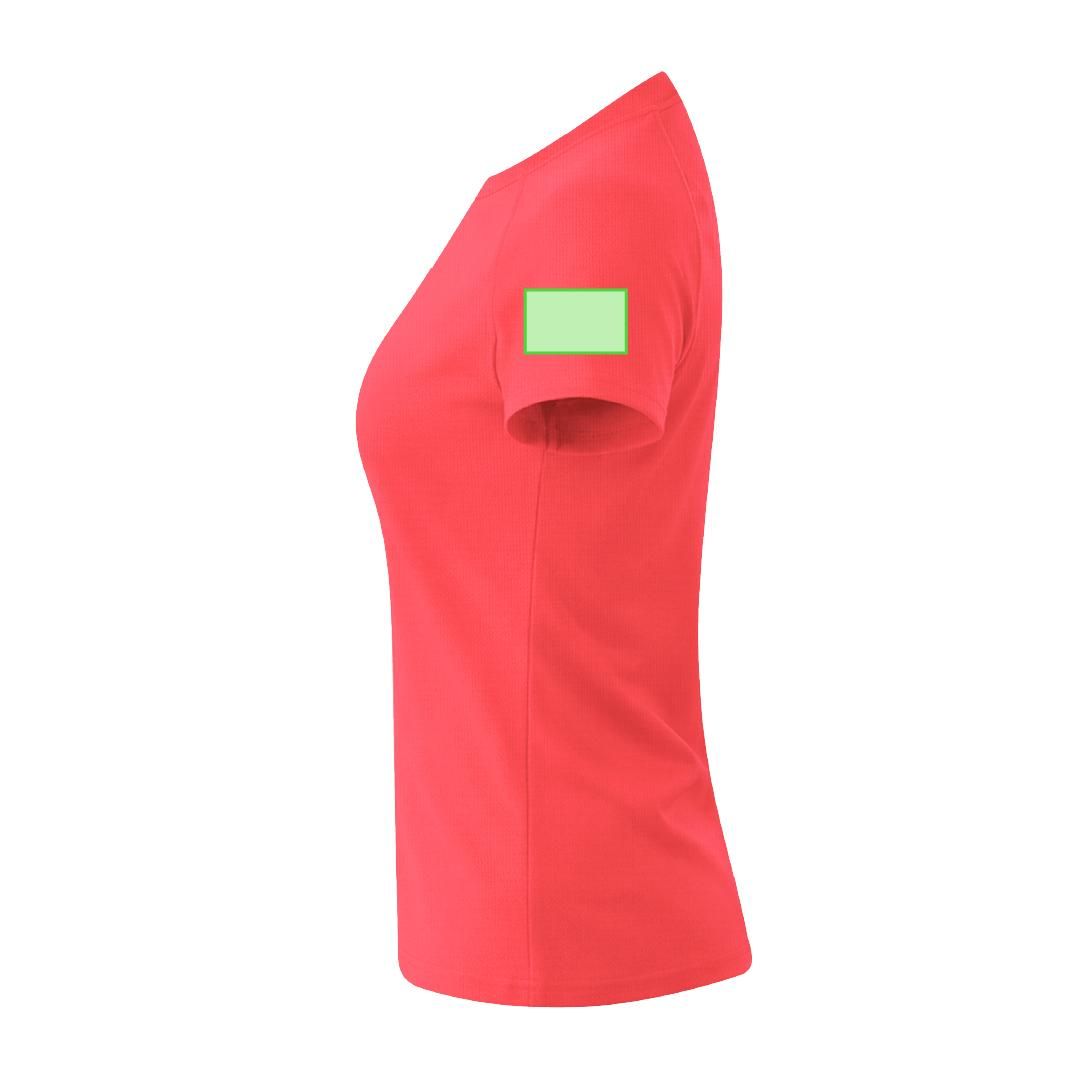 Camiseta técnica de manga corta ranglán, con fit femenino, confeccionada en tejido 100% poliéster waffle interlock , incorpora tecnología Cool Dry, que favorece la transpiración y el secado rápido. Diseño con mangas ranglán y costuras overlock en sisa y mangas. Cuello y cubrecosturas a tono.