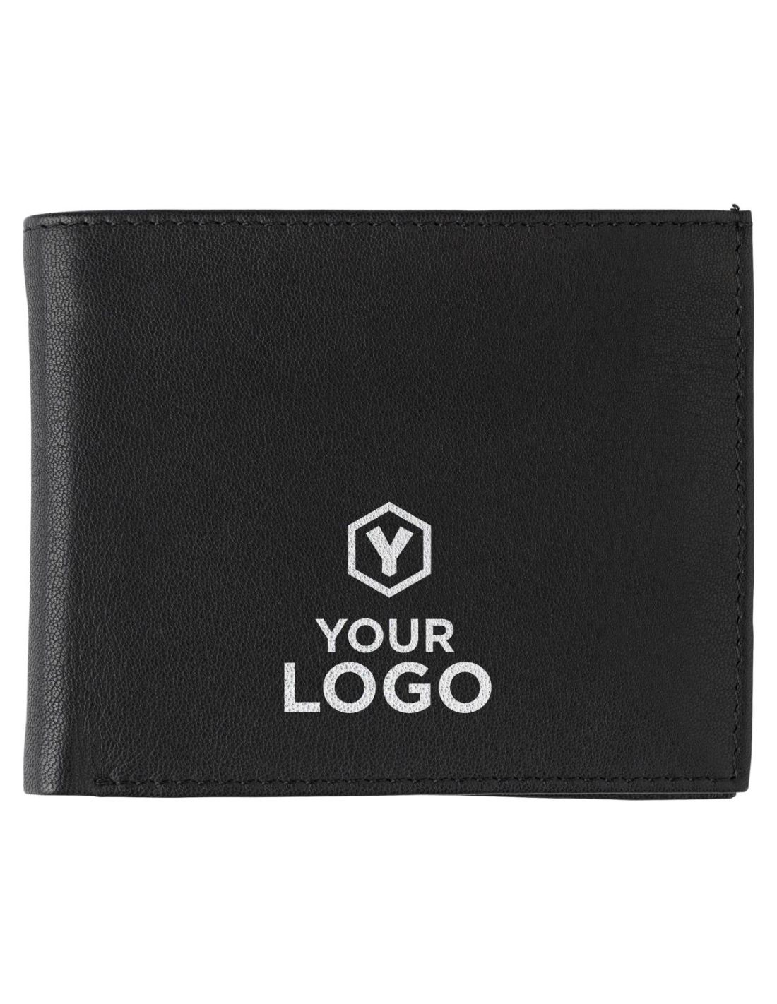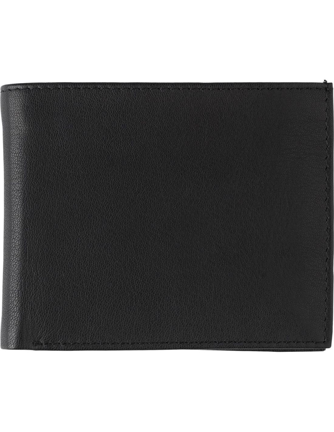 Billtero y tarjetero RFID de piel de cabra con un compartimento para monedas con cierre de botón a presión y varios bolsillos para dinero en efectivo o tarjetas.