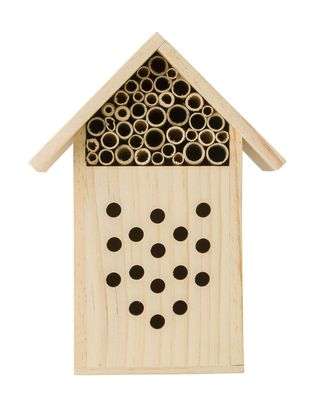Casita para abejas de madera (bamboo, haya y madera contrachapada) con gancho metálico en la parte trasera para montar. Presentada en una caja de r…