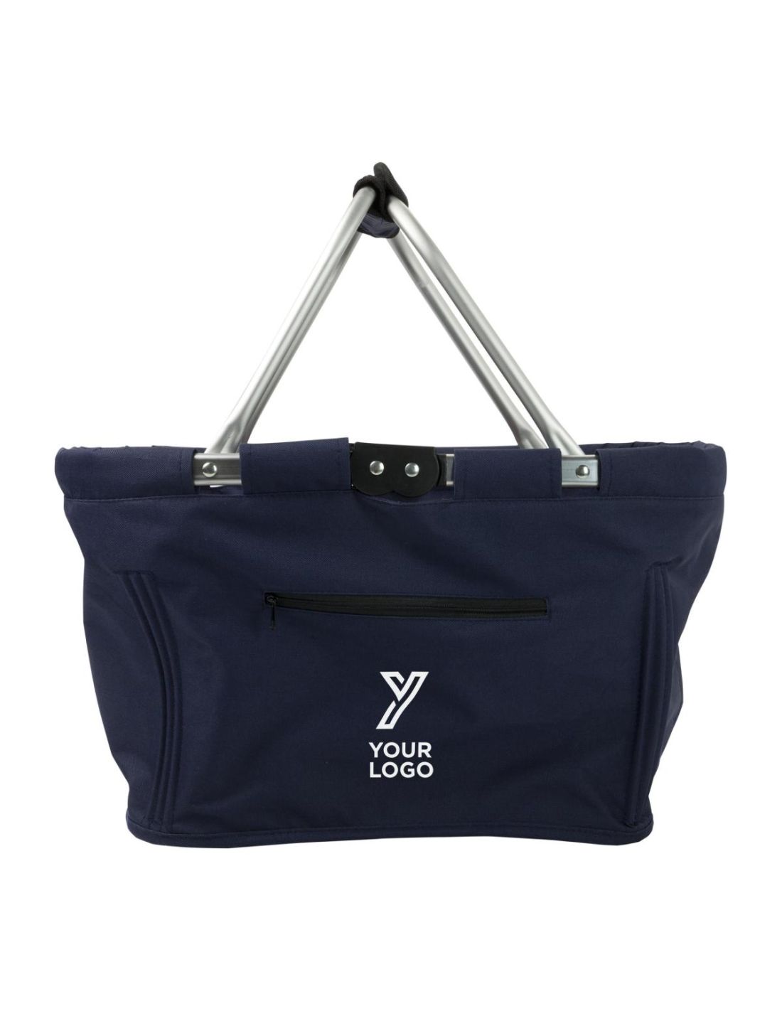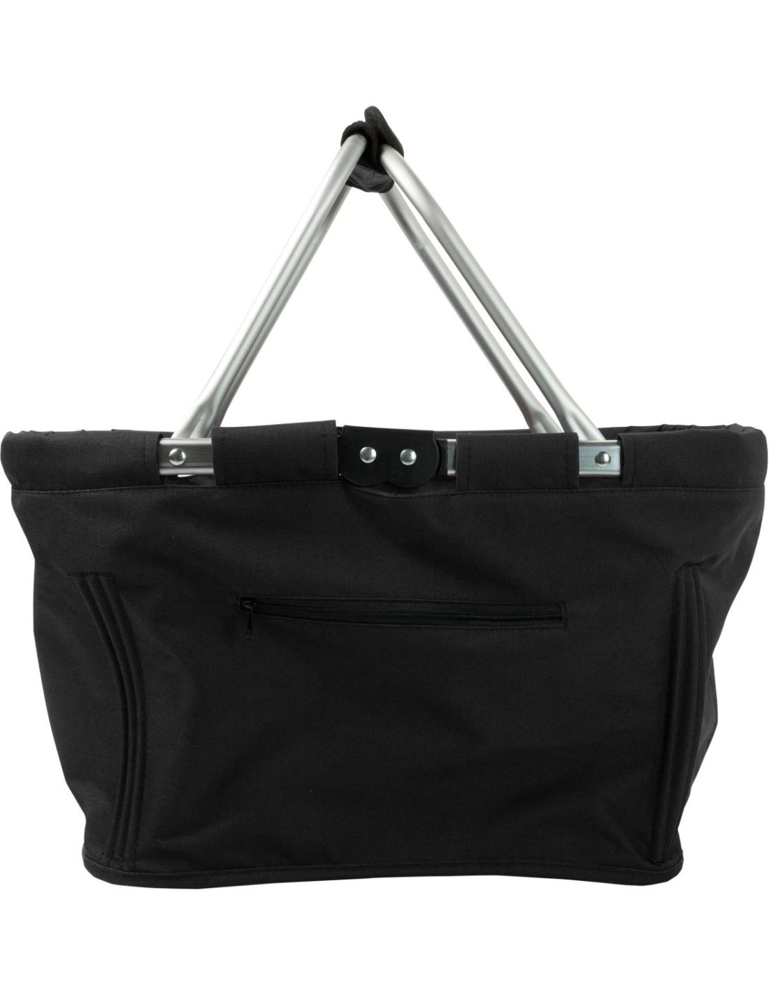 Cesta plegable de poliéster (600 D) para ir a la compra. Apilable, con un bolsillo frontal con cremallera y asas de aluminio.