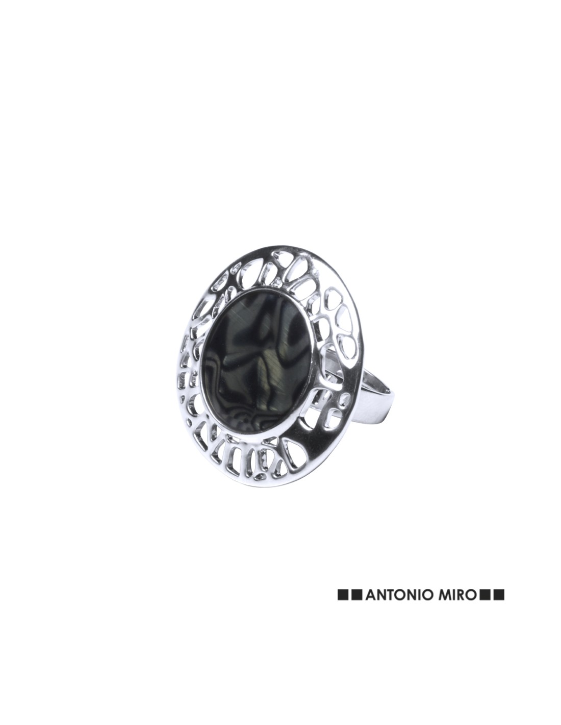 Anillo ajustable de Antonio Miró en metal con incrustación de resina. Presentado en funda de polipiel con logotipo de la marca.
