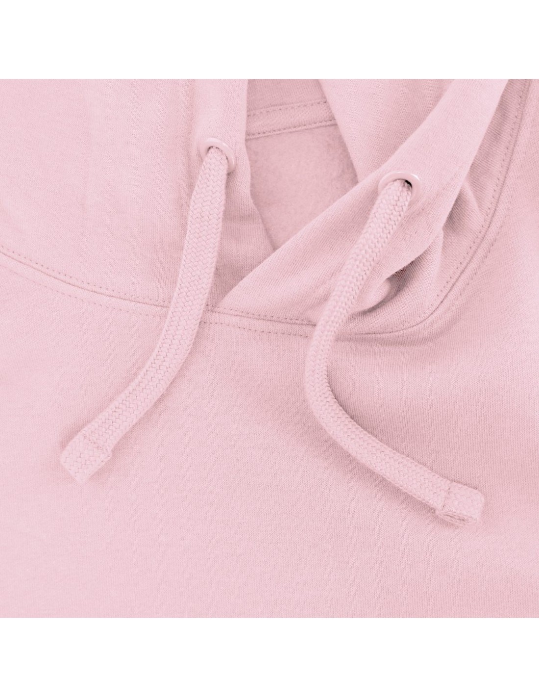 Sudadera entallada de corte femenino con capucha forrada a tono de doble tejido. Confeccionada en algodón y poliester en suave felpa perchada de 280 g/m2. Con Bolsillo tipo canguro. Cordón ajustable y ojales metálicos a tono. Cubrecosturas en el cuello. Puños y la cintura en punto canalé 1x1 con elastano para mayor ajuste y confort.