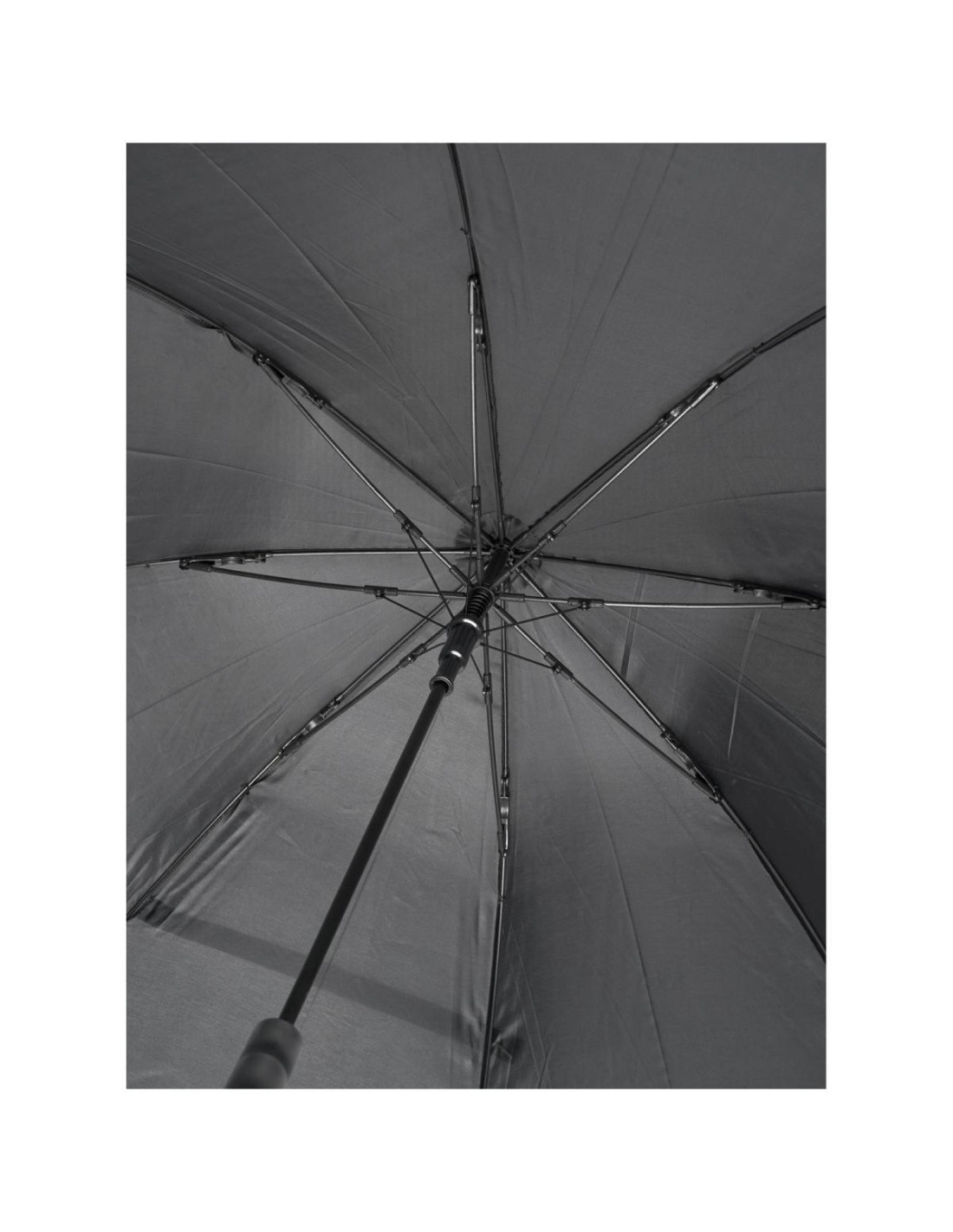Paraguas de apertura automática con capa exterior de poliéster de tafetán. Tiene un robusto eje metálico y una estructura patentada de fibra de vidrio de alta calidad, que ofrece la máxima flexibilidad en condiciones de viento. Mango de plástico recto, puntas y capa externa en la superior. Disponible en una amplia variedad de colores contemporáneos y con una gran zona de decoración.