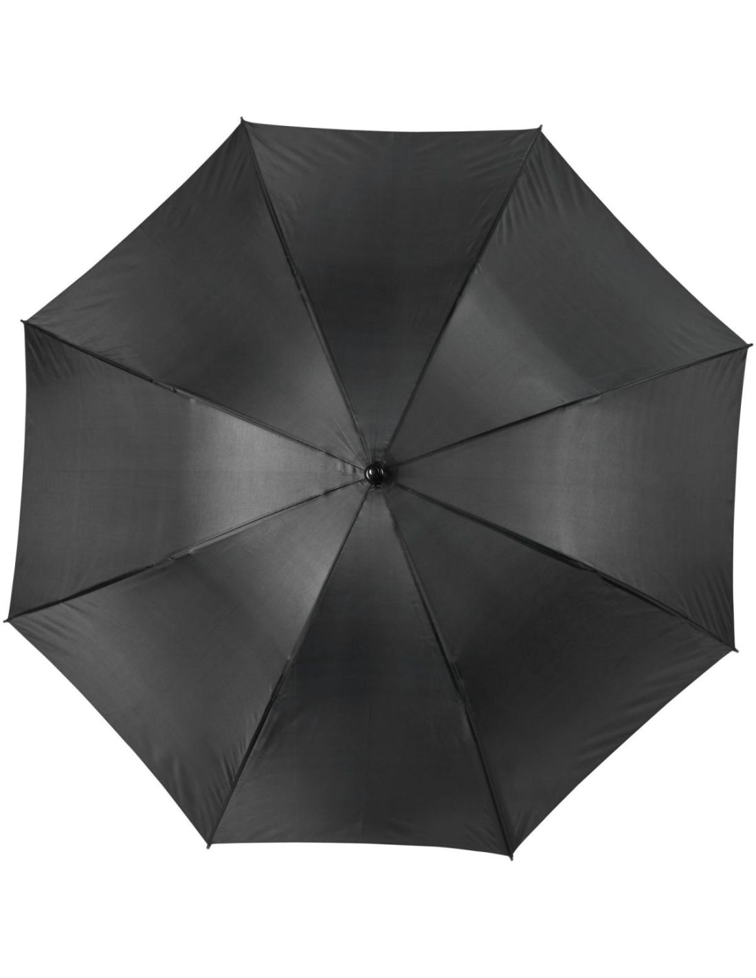Paraguas de apertura manual con capa exterior de poliéster. Tiene un robusto eje metálico y una estructura de fibra de vidrio de alta calidad, que ofrece la máxima flexibilidad en condiciones de viento. Mango curvado de goma EVA, puntas y parte superior de plástico. Disponible en una amplia variedad de colores contemporáneos y con una gran zona de decoración en cada uno de los paneles.