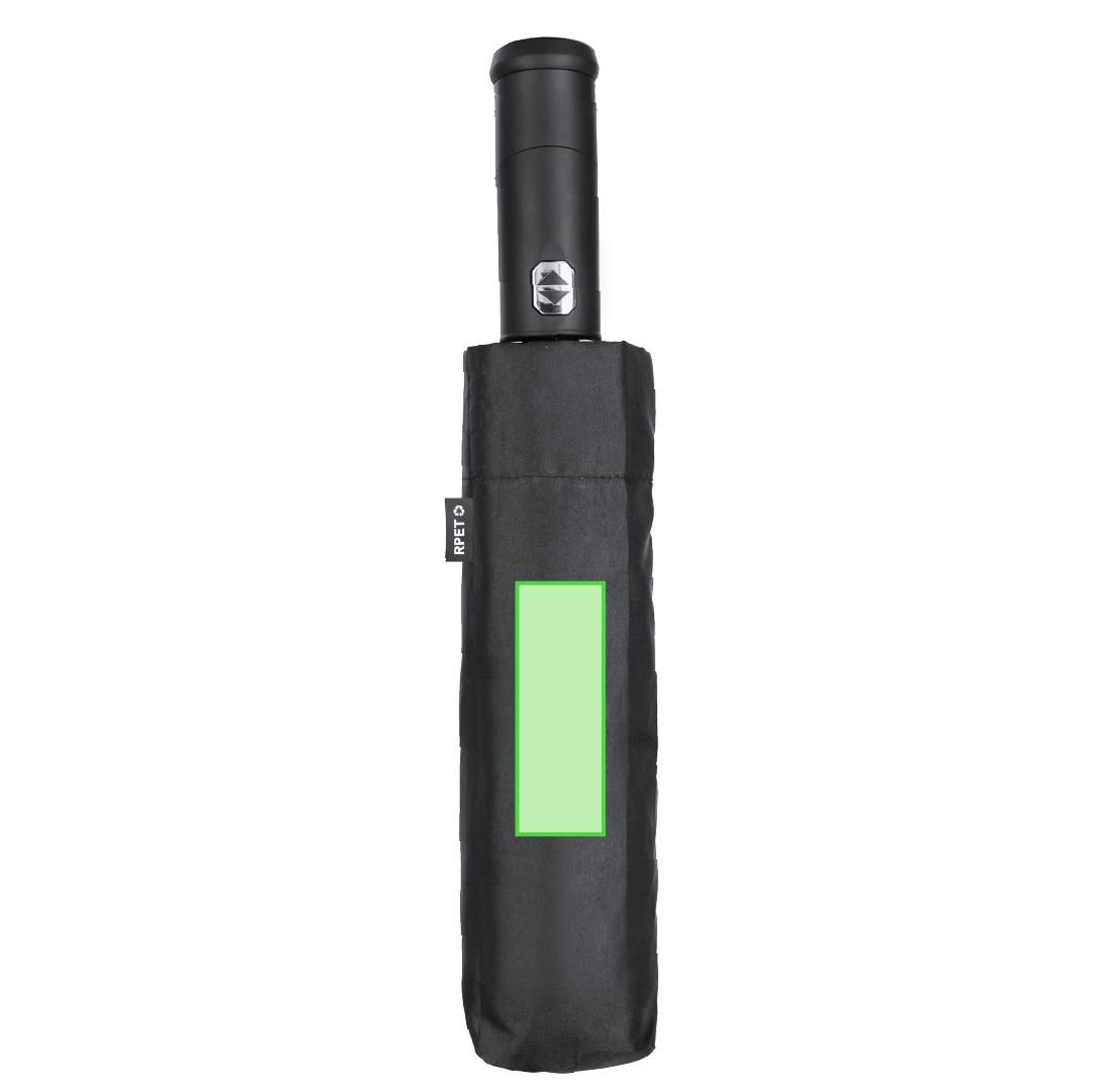 Paraguas fabricado en RPET. Incluye práctico mango linterna con giro de 180º en suave tacto goma y botón ON/OFF. Diámetro de 105 cm en material...