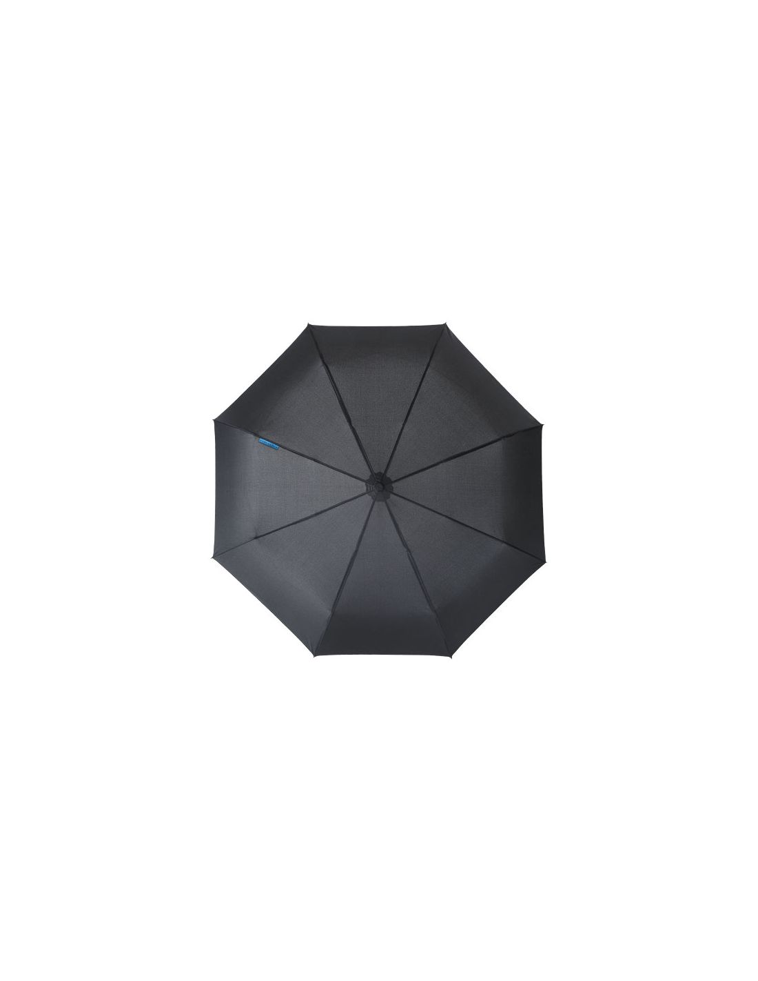 Paraguas de 3 secciones de diseño exclusivo y apertura y cierre automáticos. Eje metálico de color negro, varillas de fibra de vidrio y puño de plástico cubierto de goma. Se suministra con una...