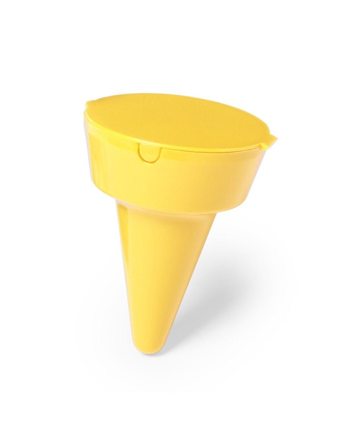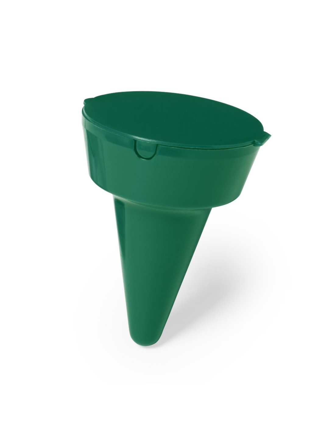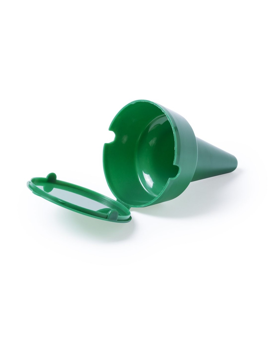 Resistente cenicero portátil con cuerpo acabado en vivos colores y pincho de anclaje.
