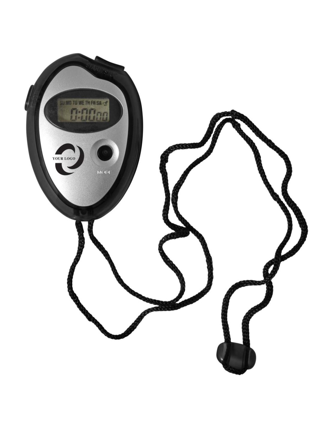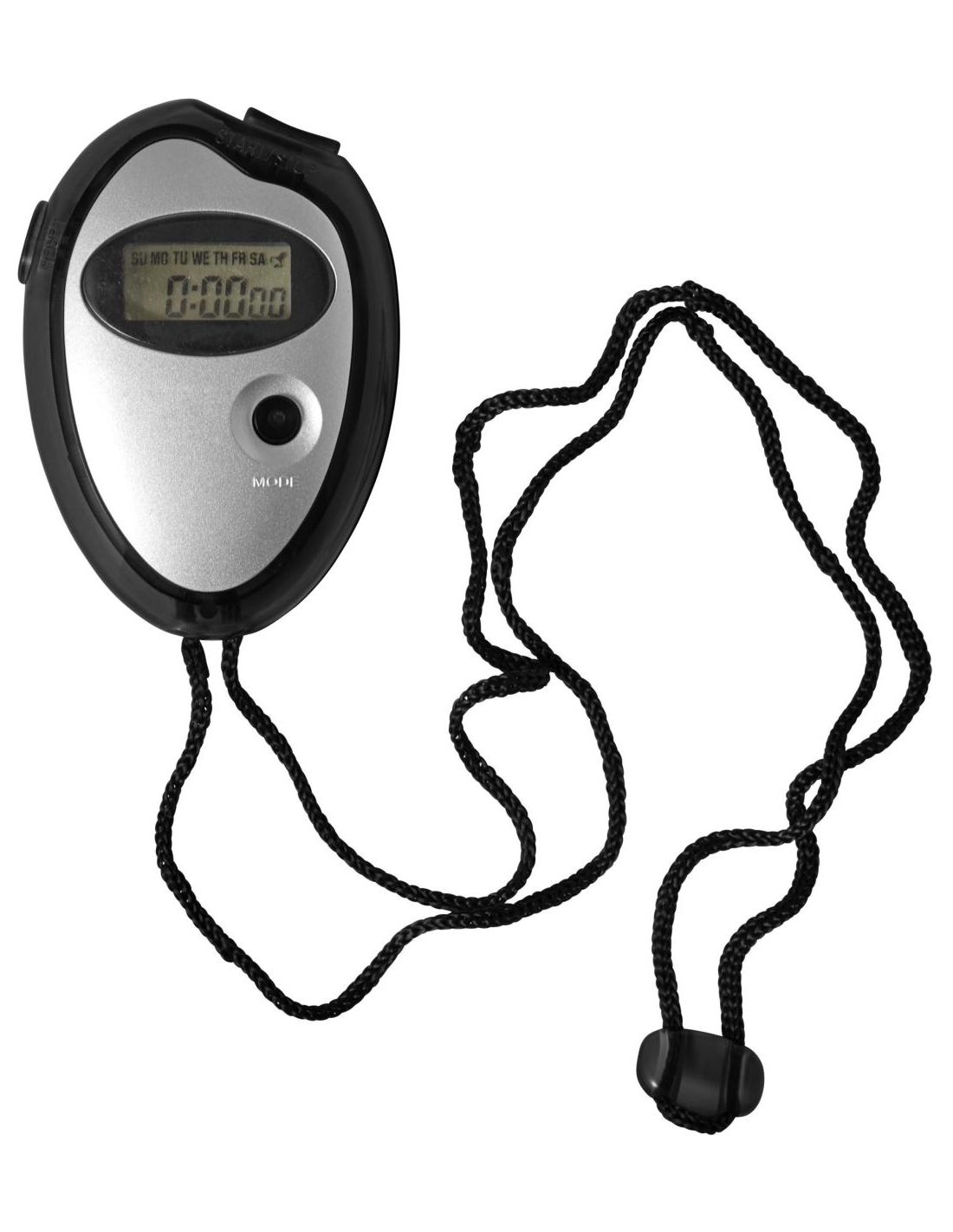 Cronómetro digital de plástico con cordón de nilón. Pilas incluidas.