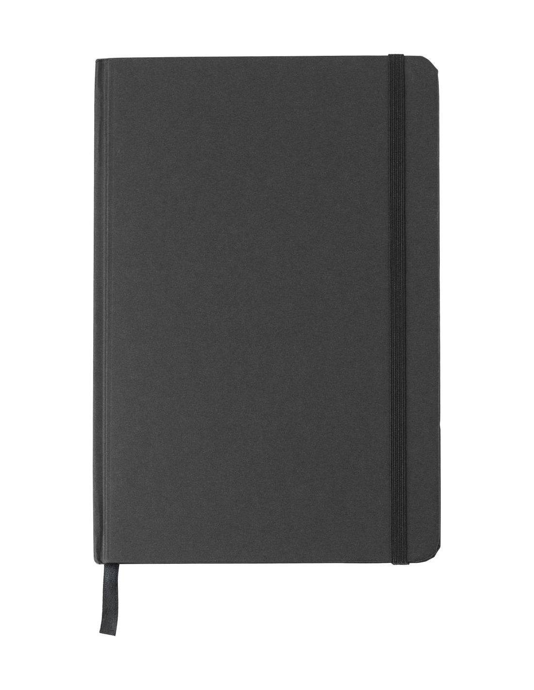 Libreta de cartón reciclado (aprox. A5) con 160 páginas a rayas. Con elástico y cinta marcapáginas a juego.