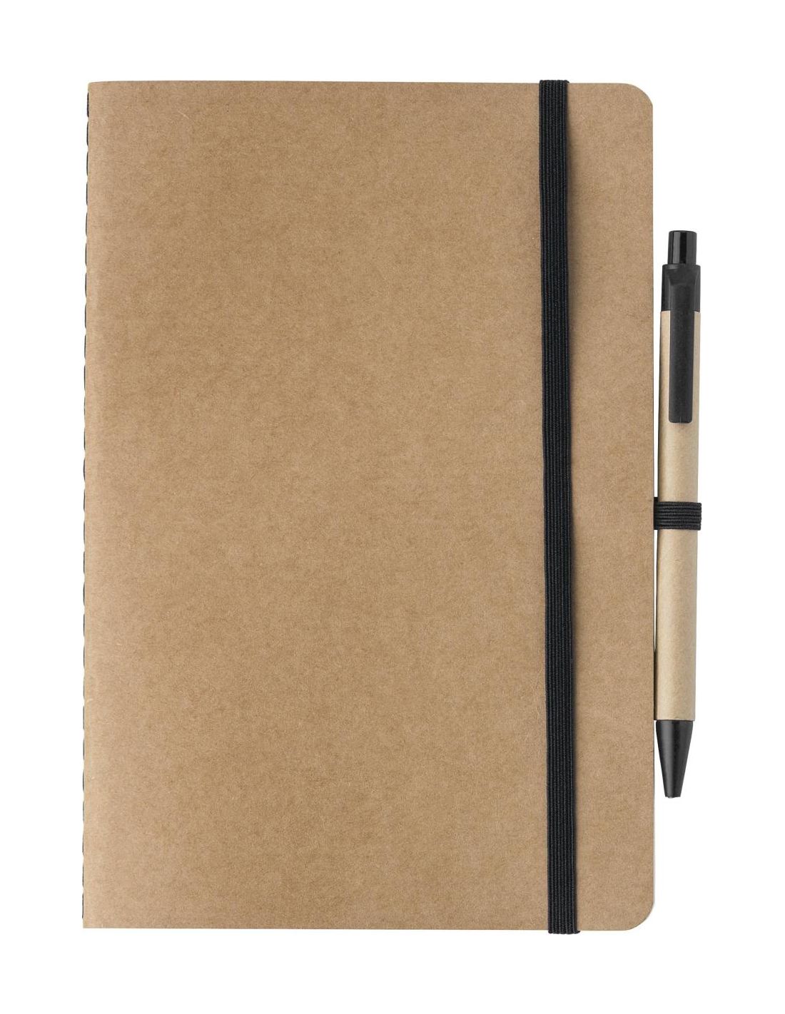 Libreta de cartón reciclado (aprox. A5) con 120 páginas en blanco. Con goma elástica y presilla para el bolígrafo a juego Incluye un bolígrafo de c…