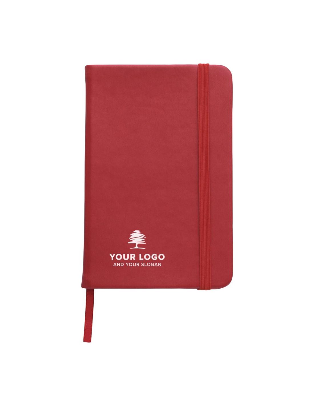 Libreta (aprox. A5) con tapas de polipiel, 96 hojas lisas, marca páginas y cierre con goma.