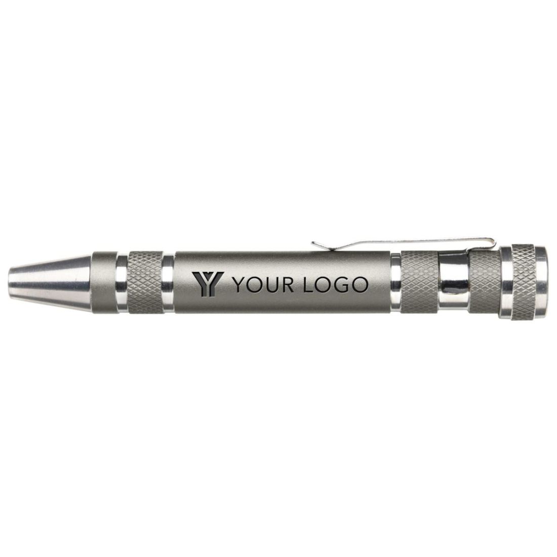 Soporte de metal en forma de bolígrafo, con 8 destornilladores.