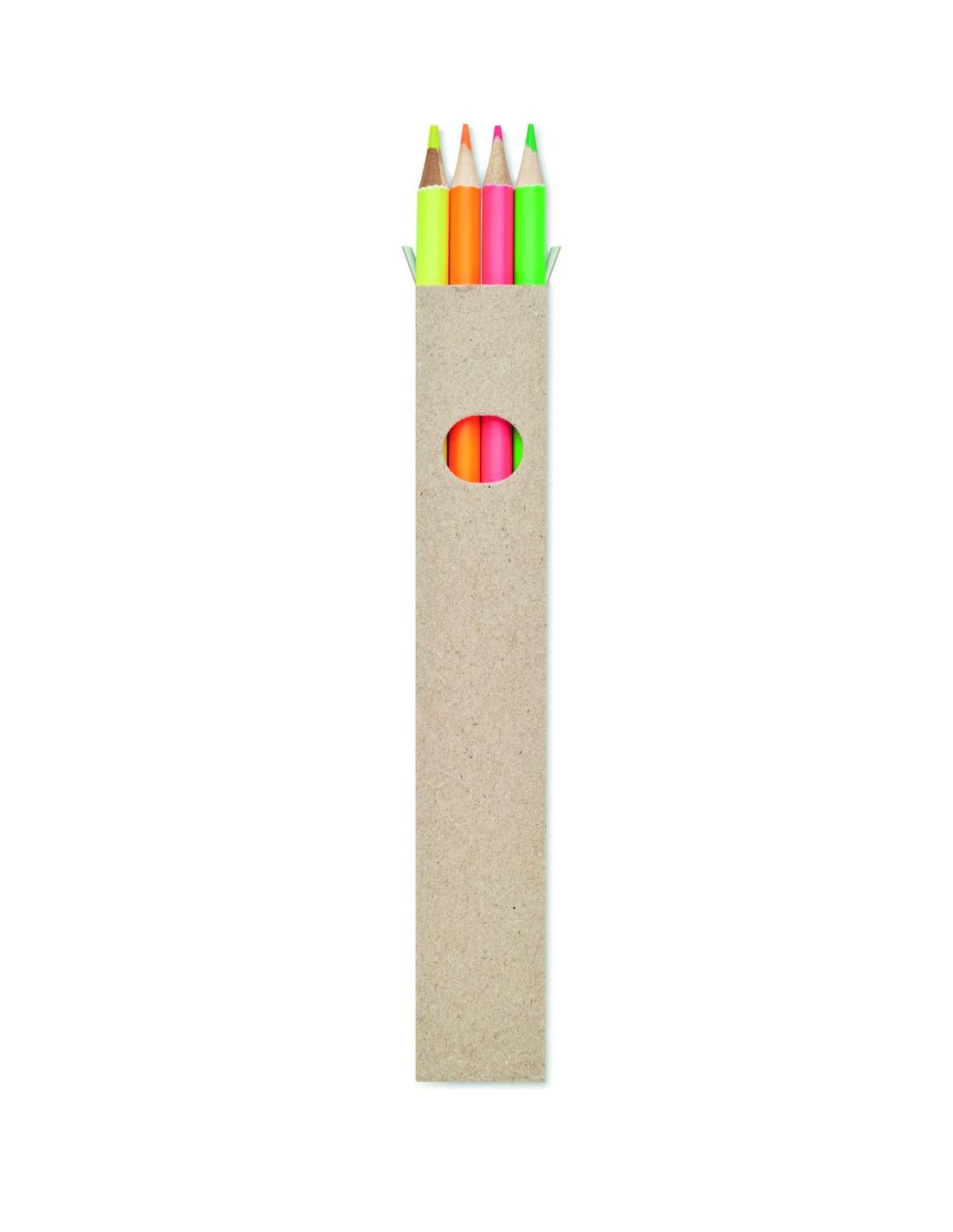 Juego de 4 lápices de colores resaltadores en caja de papel reciclado.