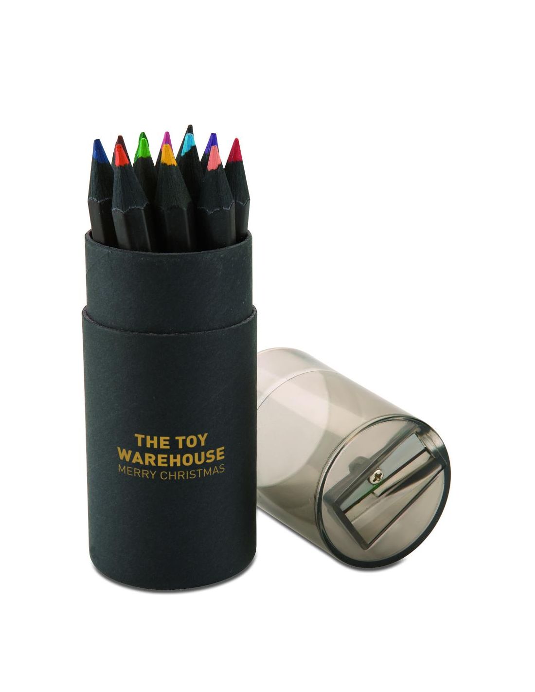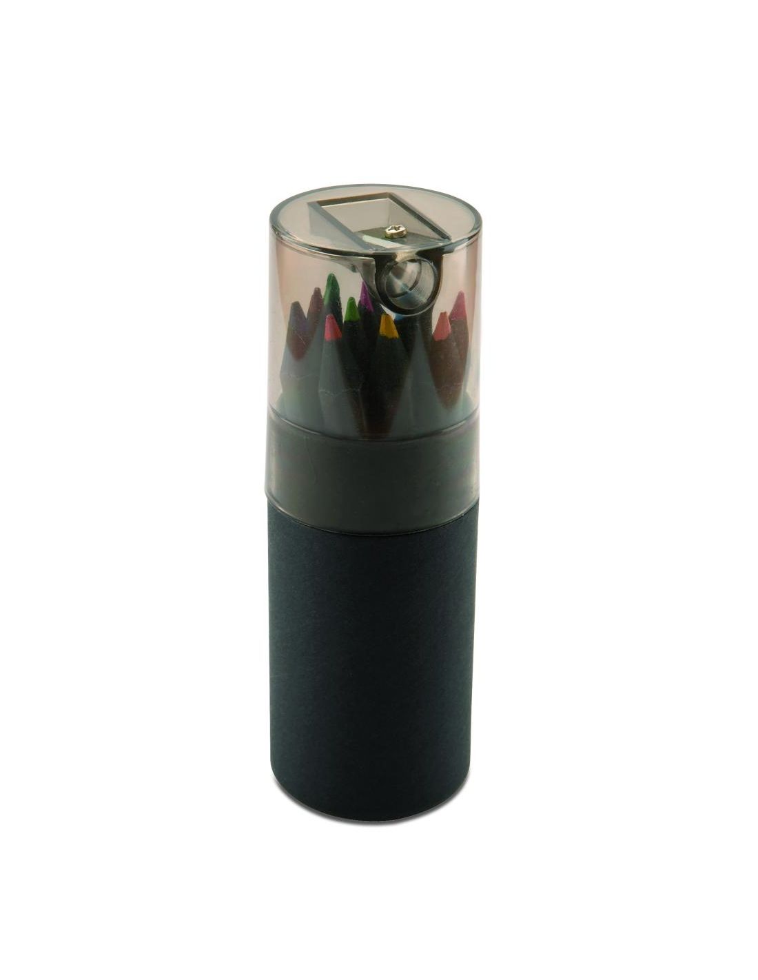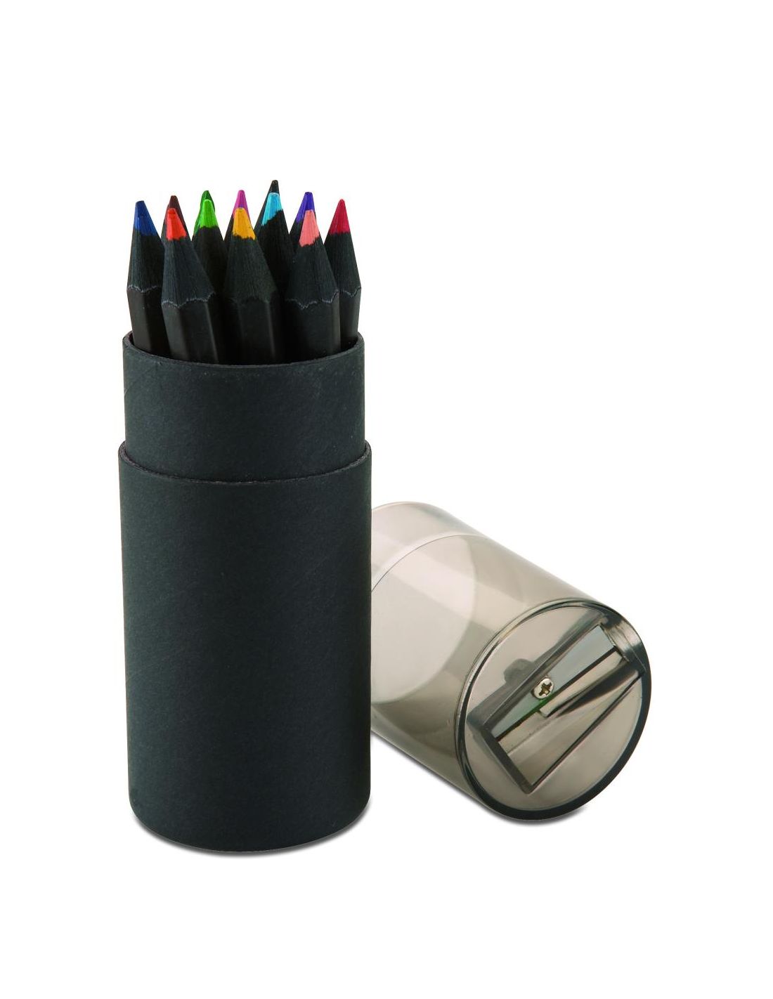 Set de 12 lápices de colores presentados en un tubo de cartón negro con sacapuntas en la tapa. FSC®-certified | FSC 100%, P5.1, W17.2, FSC-C213206