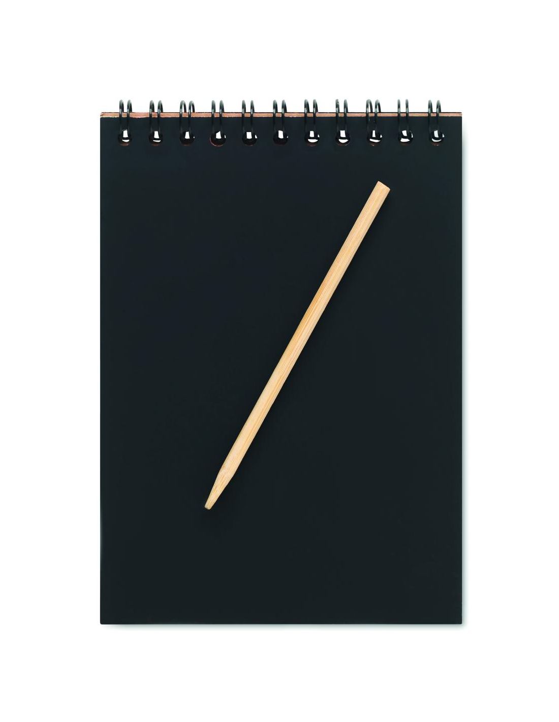 Cuaderno de papel kraft de anillas para rascar que incluye 10 hojas de papel reciclado negro para rascar y bolígrafo de madera.