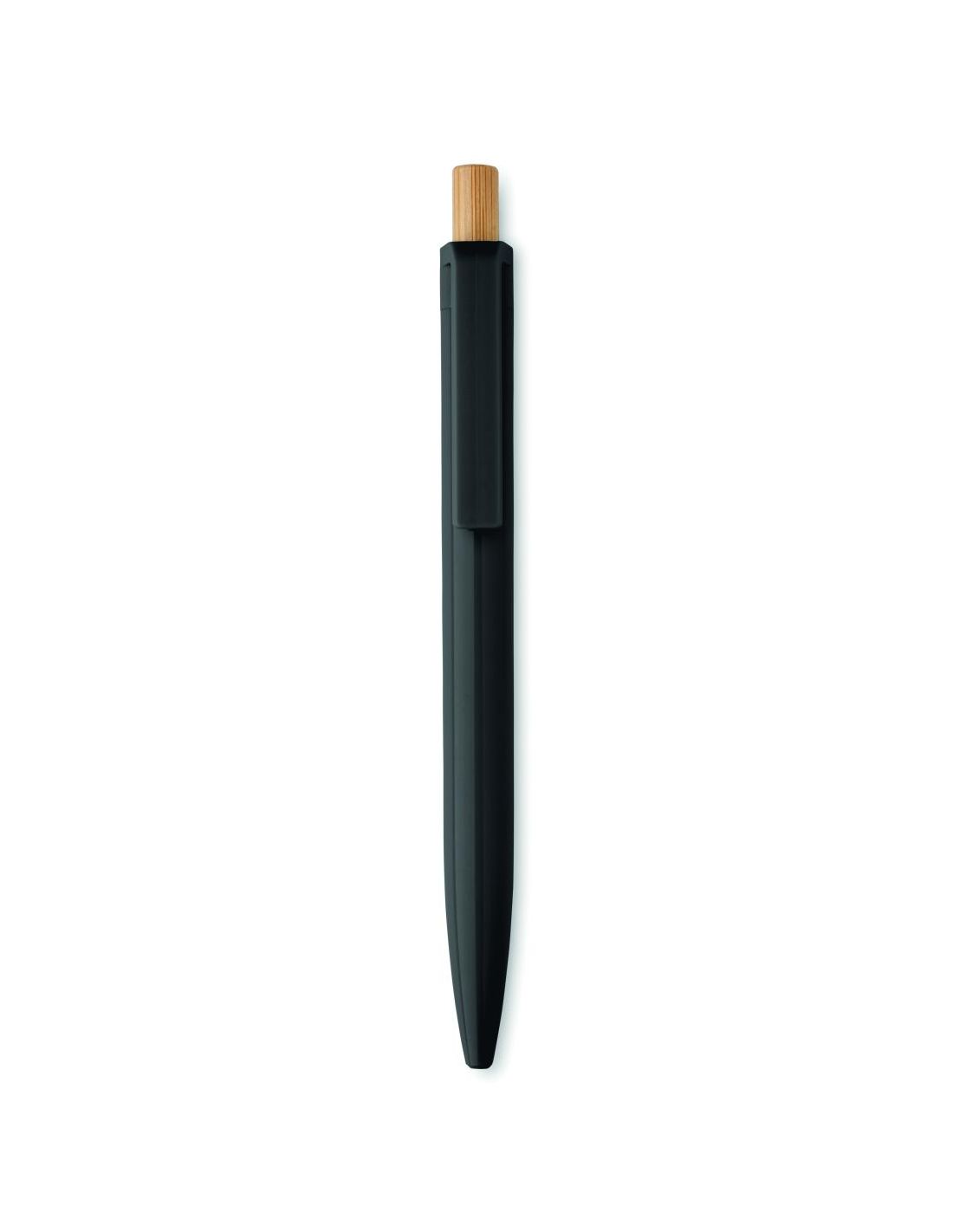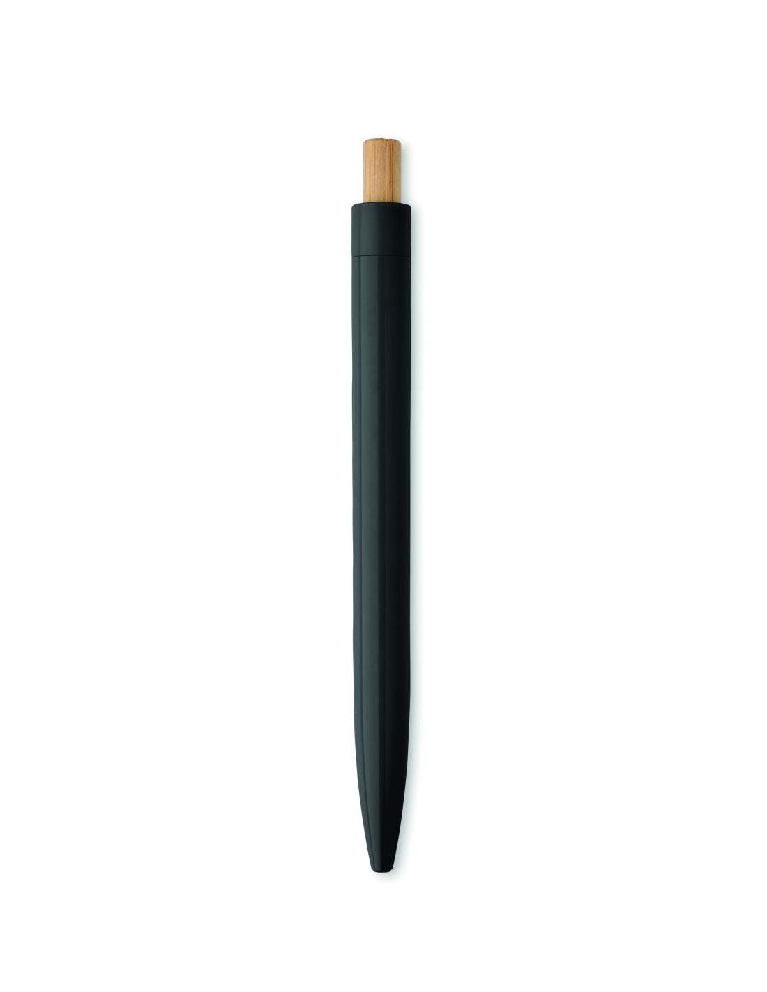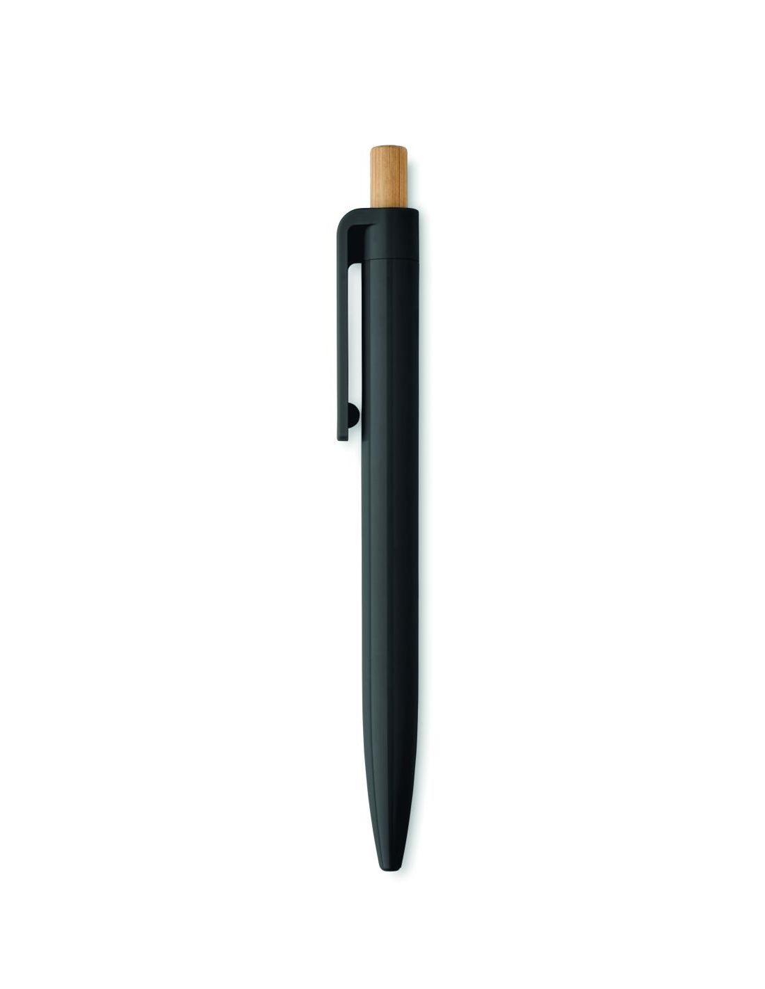 Bolígrafo de ABS reciclado con pulsador de bambú. Tinta azul.