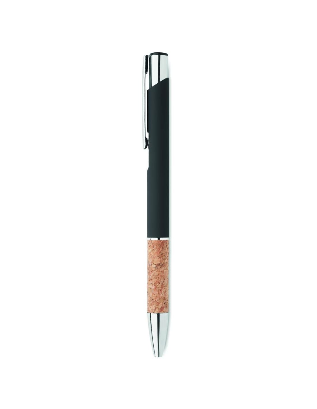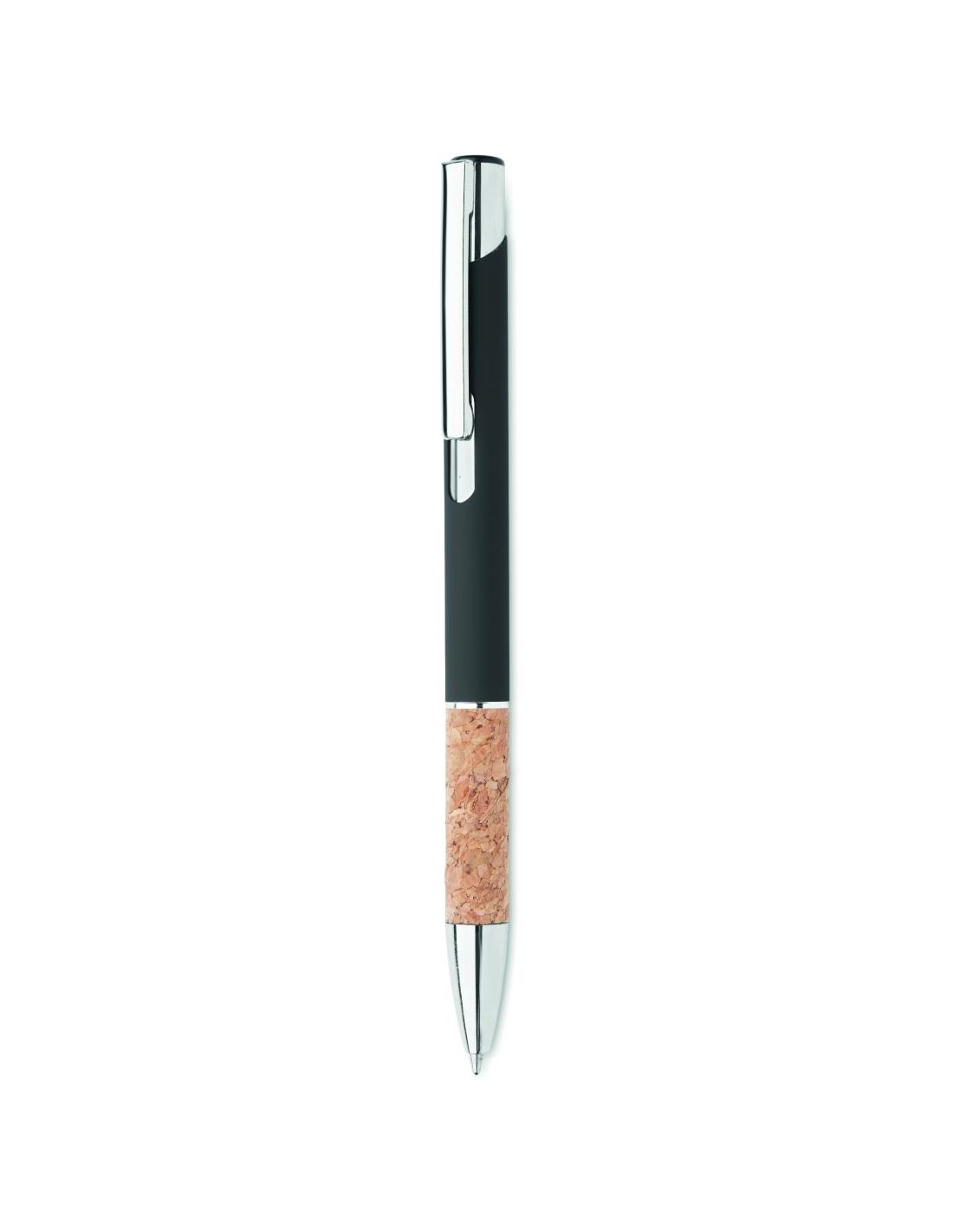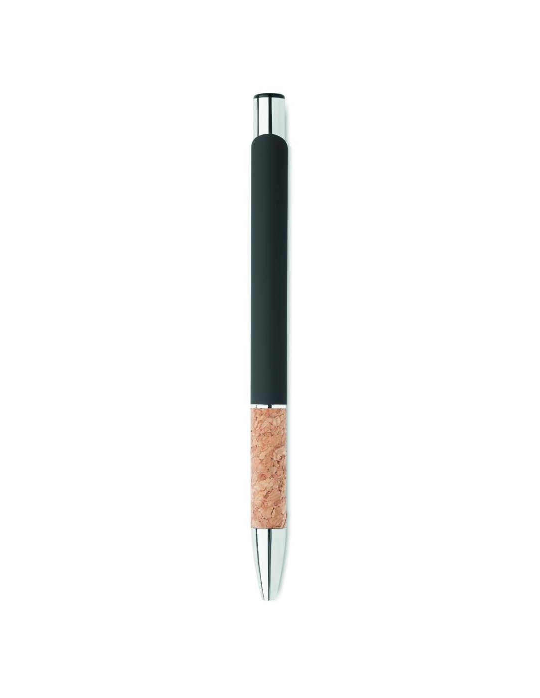 Bolígrafo con pulsador de aluminio con empuñadura de corcho. Tinta azul.