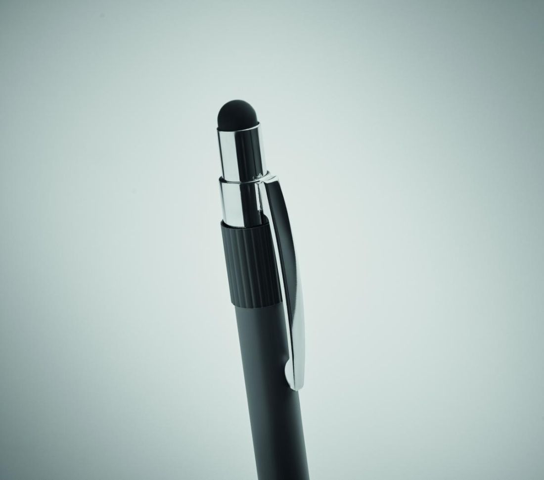 Bolígrafo spinner antiestrés de aluminio reciclado con pulsador. Tinta azul.