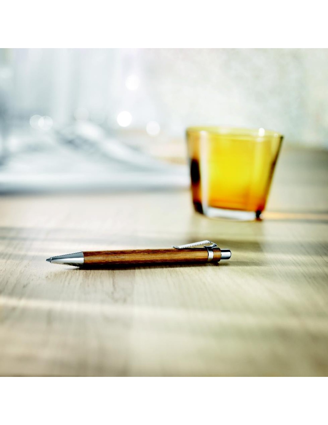Bolígrafo automático realizado en bambú con acabados cromados. Tinta azul. El bambú es material natural, el color del articulo puede variar. FSC®-c…