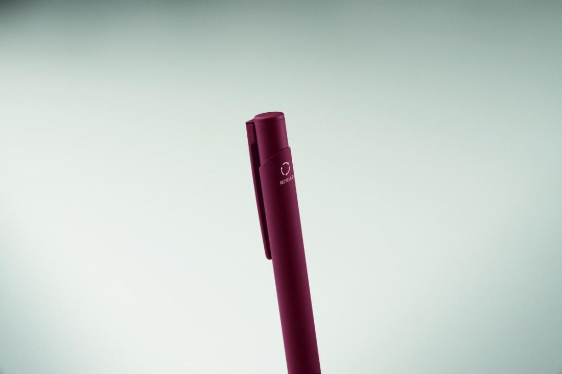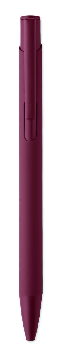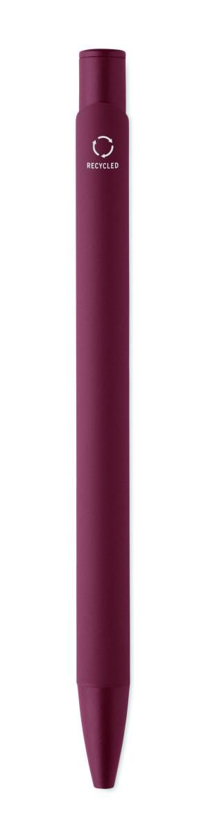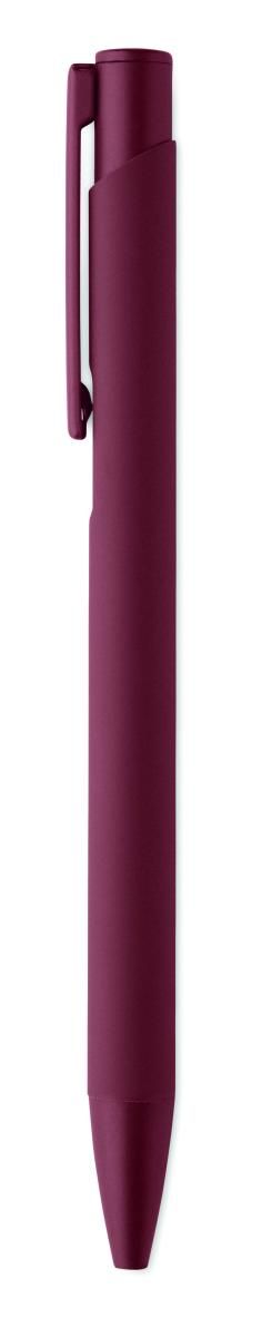 Bolígrafo de aluminio reciclado con clip de hierro y cuerpo engomado en color. Tinta azul.