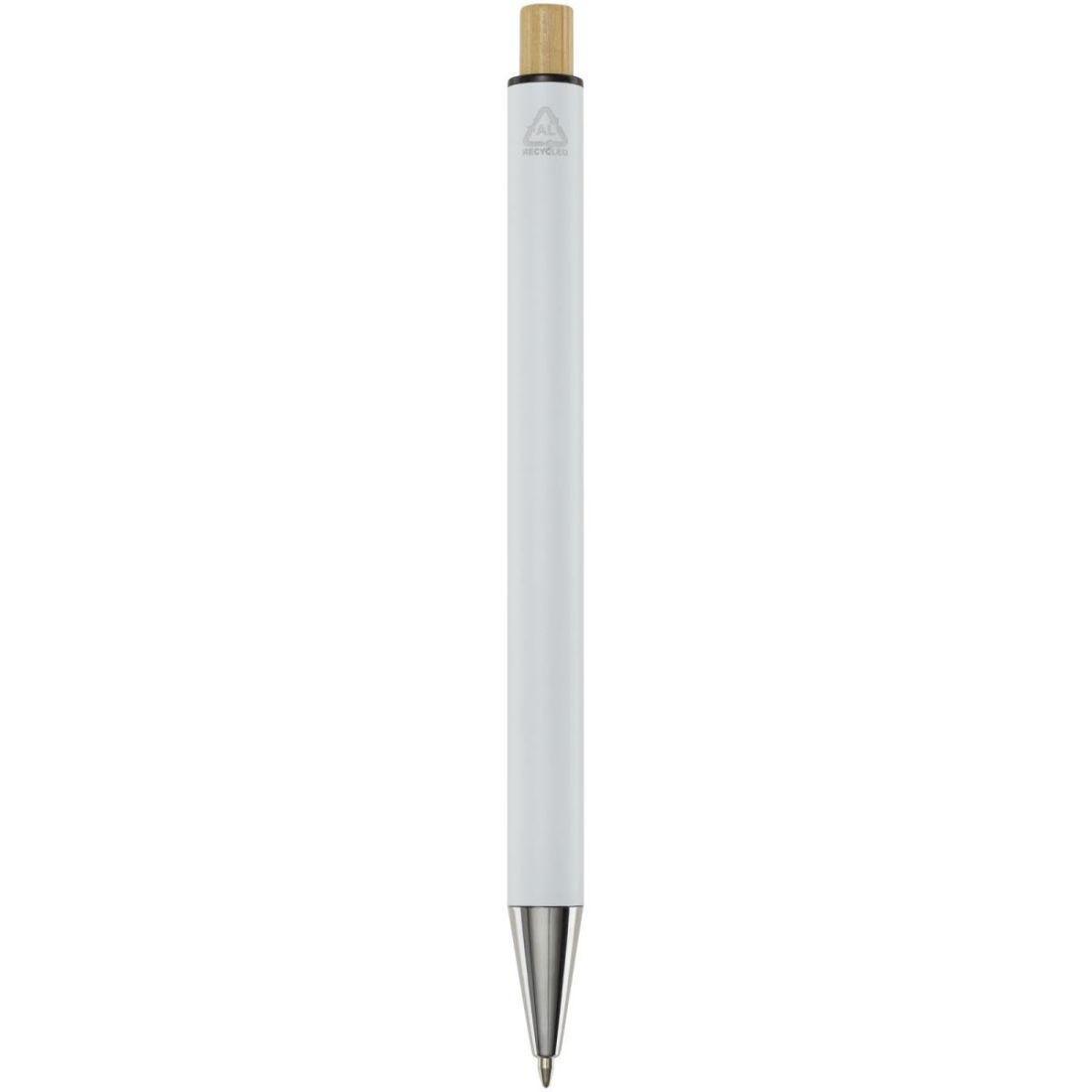 El bolígrafo está fabricado con aluminio reciclado, que requiere menos energía que la producción de aluminio a partir de materias primas. También disminuye la cantidad de residuos en los vertederos y ayuda a conservar los recursos naturales con el objetivo de reducir las emisiones de gases de efecto invernadero. El pulsador está hecho de bambú. Color de la tinta: Azul. Longitud de escritura: 800 metros. Tamaño de la punta: 1,00 mm.