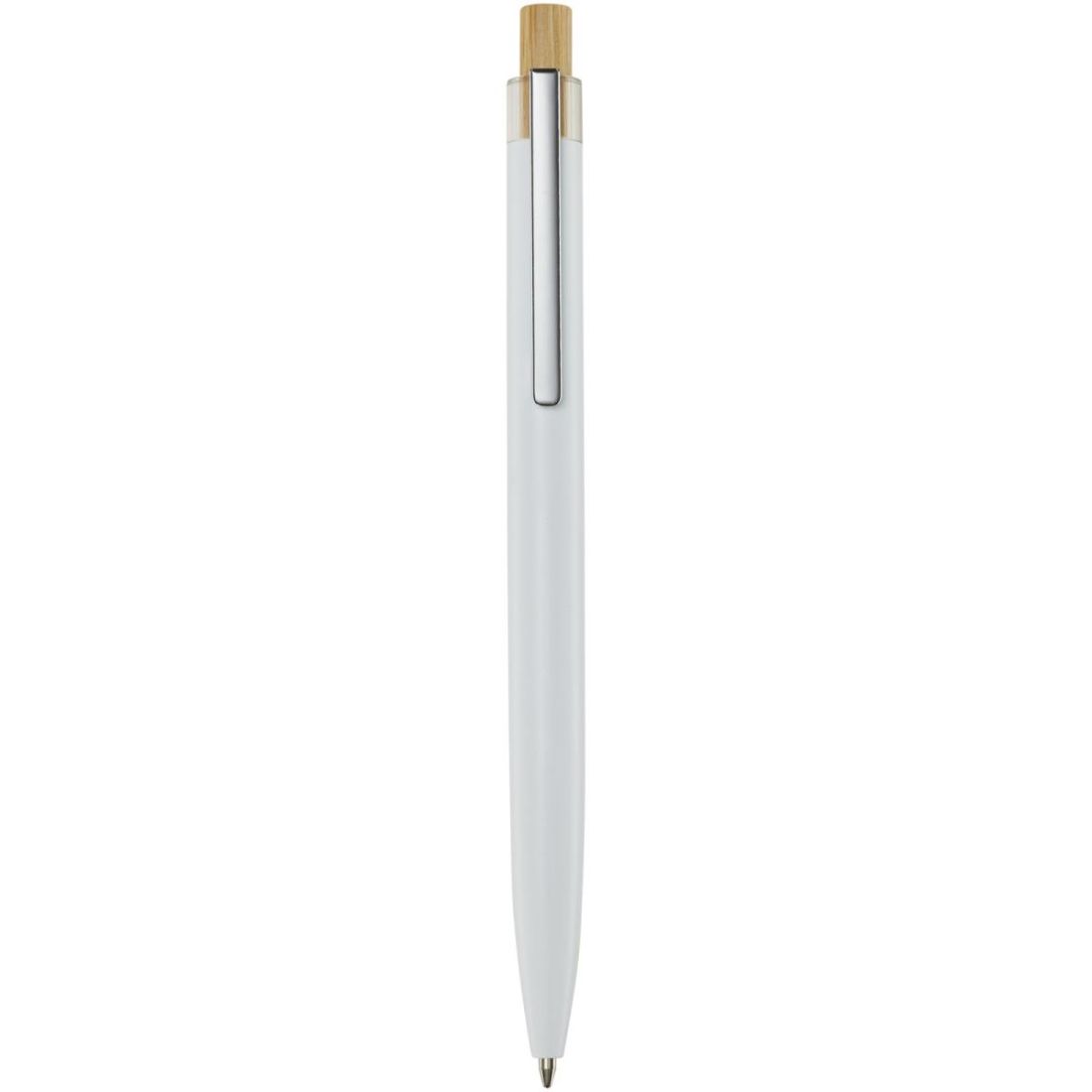 El bolígrafo está fabricado con aluminio reciclado, que requiere menos energía que la producción de aluminio a partir de materias primas. También disminuye la cantidad de residuos en los vertederos y ayuda a conservar los recursos naturales con el objetivo de reducir las emisiones de gases de efecto invernadero. El pulsador está hecho de bambú. Color de la tinta: Azul. Longitud de escritura: 800 metros. Tamaño de la punta: 1,00 mm.