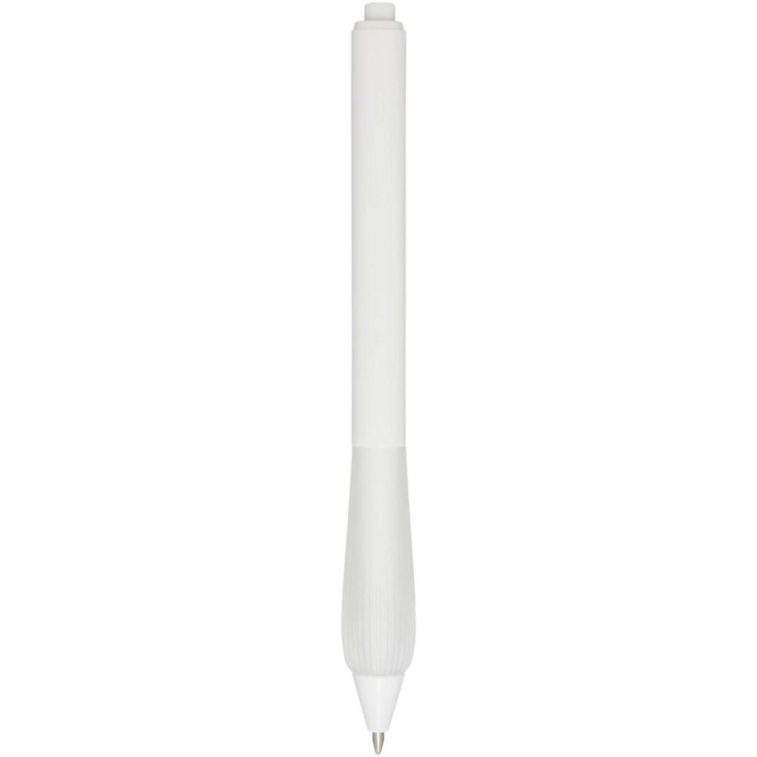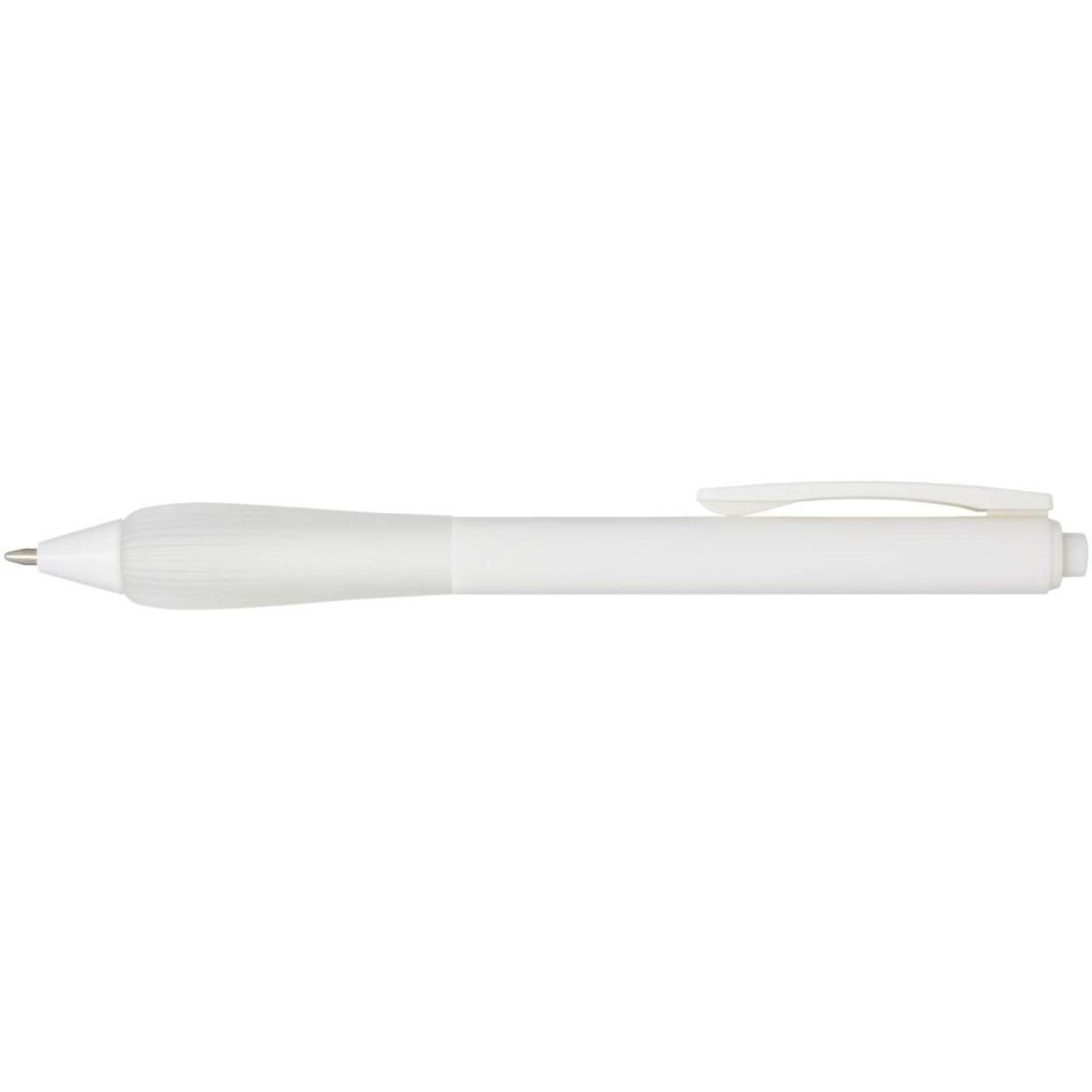 Bolígrafo de plástico reciclado con cuerpo recubierto de goma y empuñadura de TPR. Color de la tinta: Azul. Longitud de escritura: 1000 metros. Tamaño del plumín: 1,0 mm.