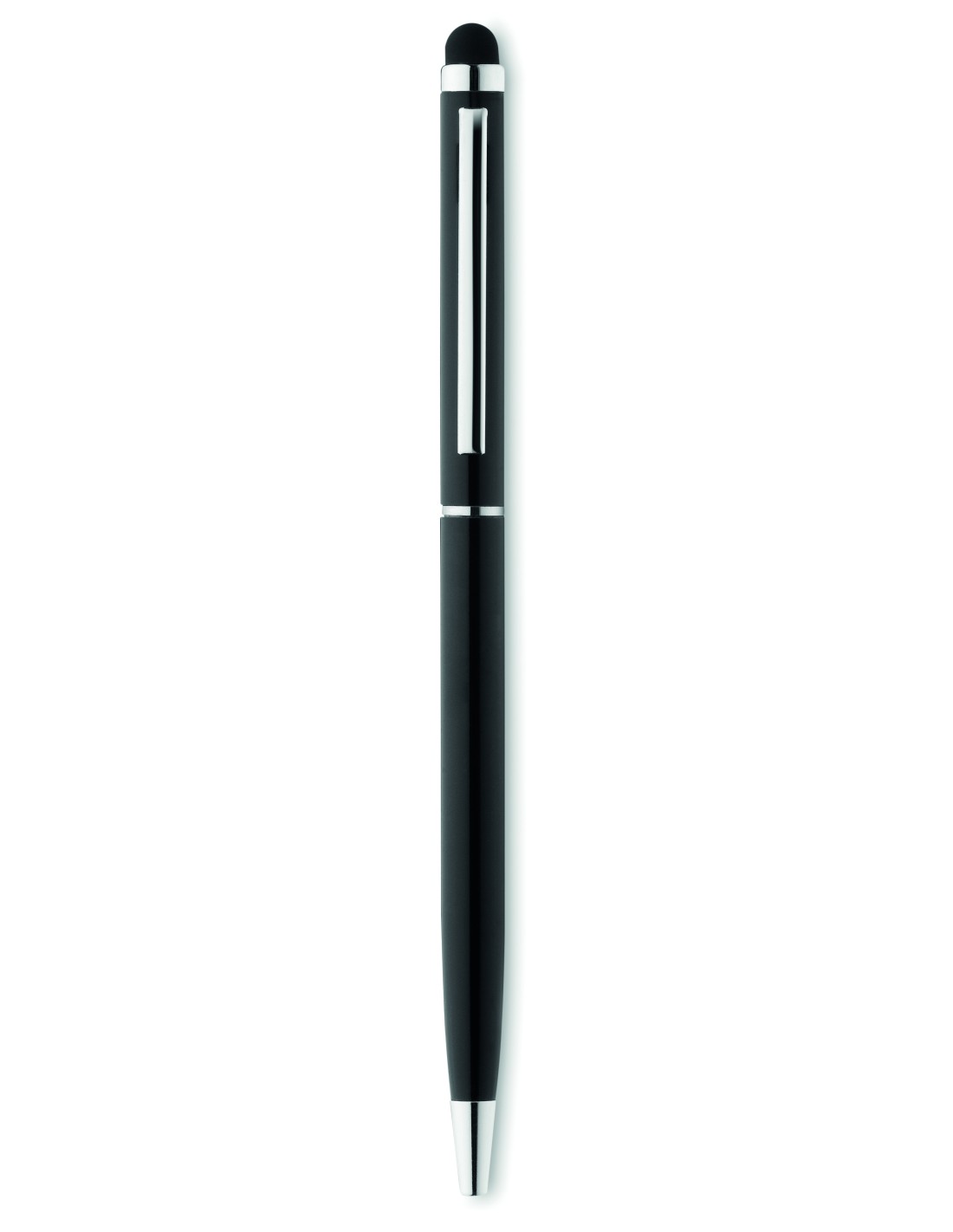 Bolígrafo giratorio de aluminio reciclado con puntero y clip cromado brillante. Tinta azul.
