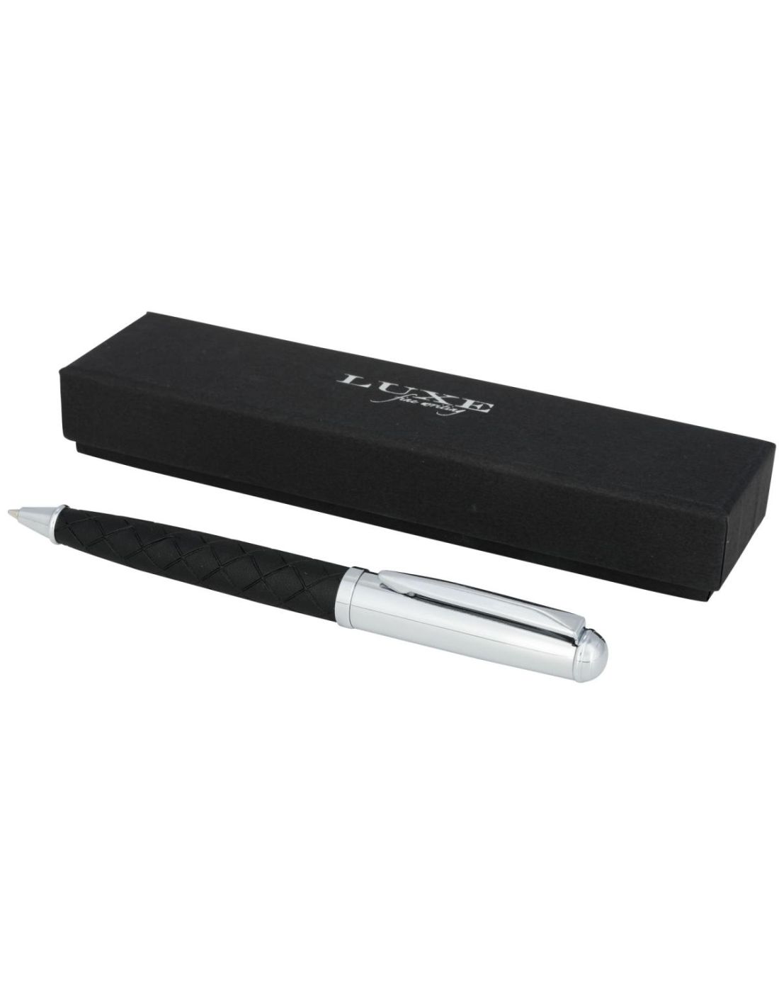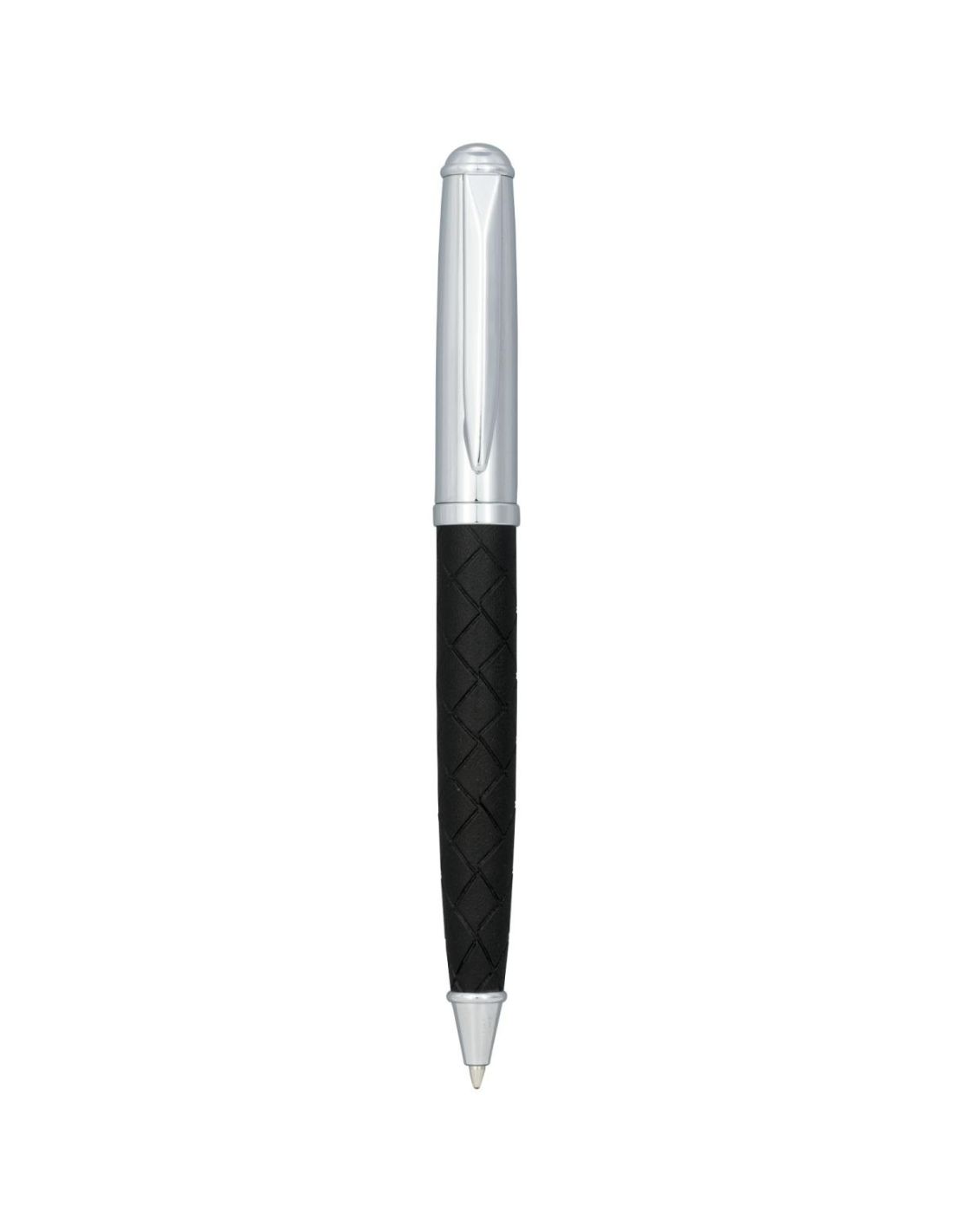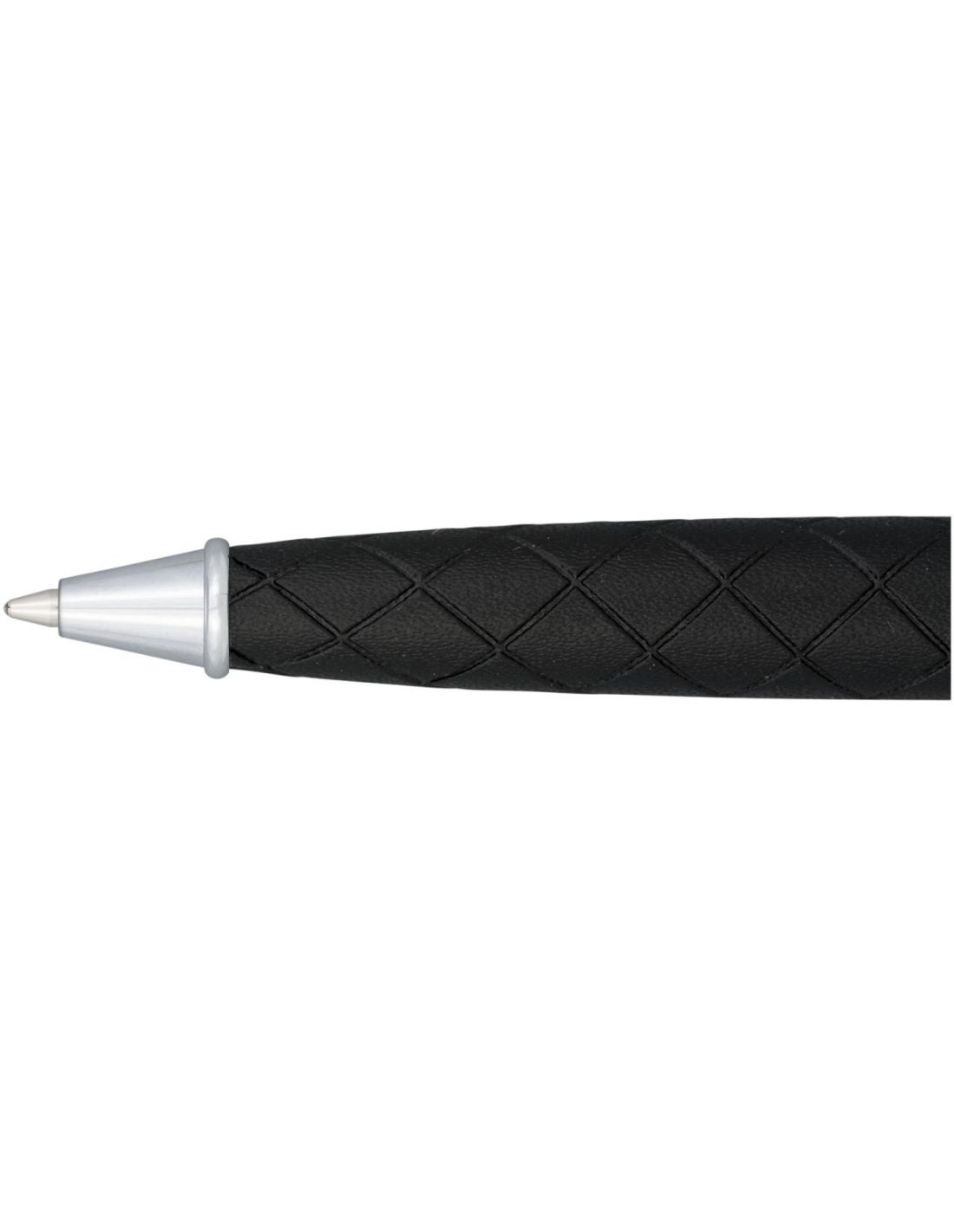 Bolígrafo de diseño exclusivo, con el cuerpo inferior forrado de cuero estampado con líneas en cruz. Incluye recarga negra de alta calidad y está empaquetado en una caja de regalo \ (16 x 4,5 x 2,5 cm).