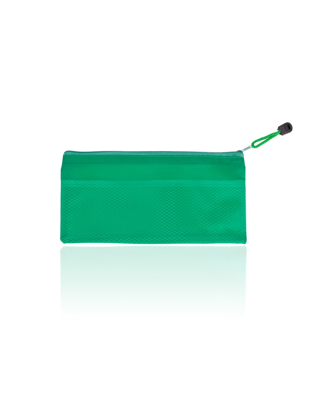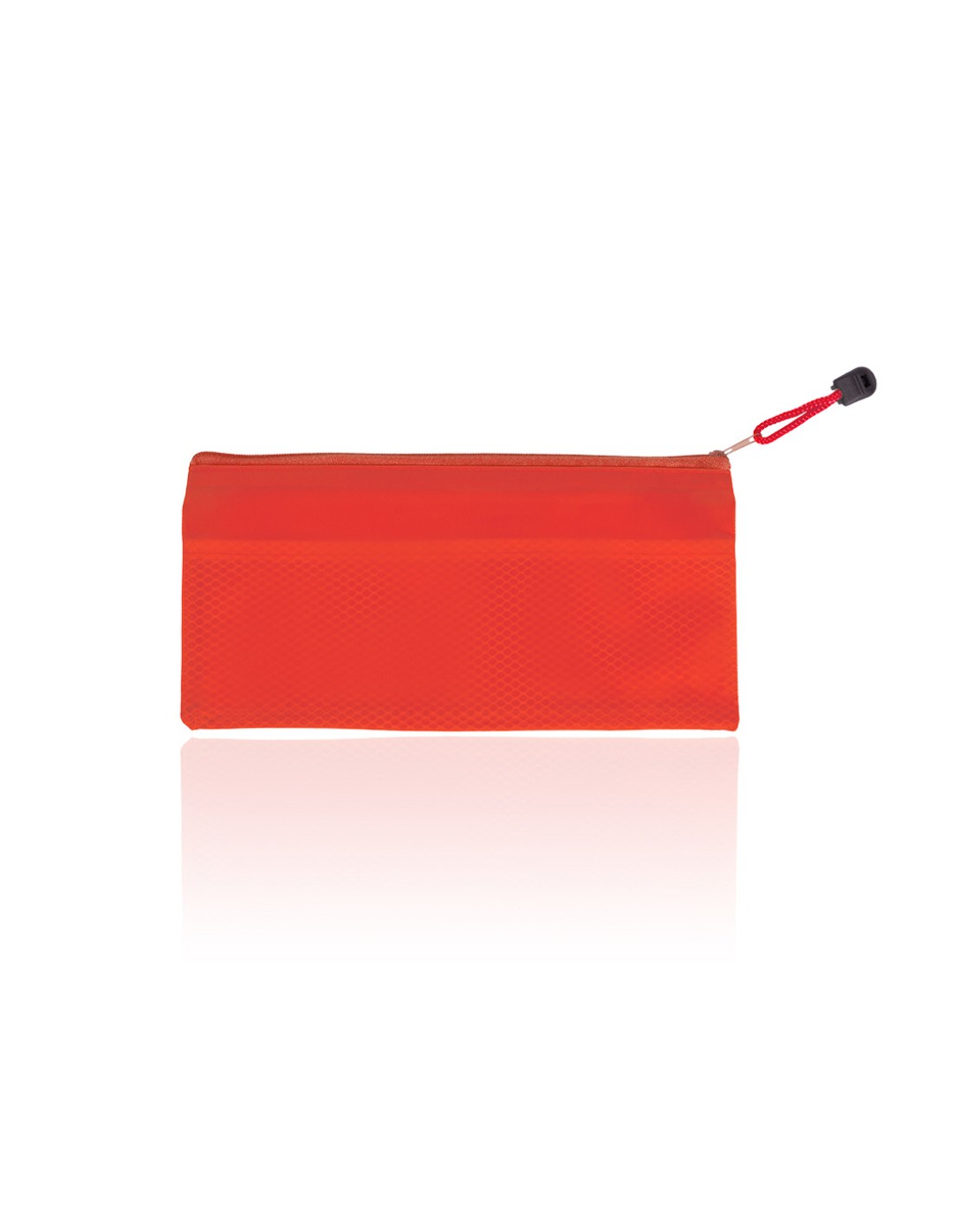 Estuche de cremallera con suave cuerpo acabado en PVC de viva gama de colores. Con cinta a juego en tirador para fácil apertura.