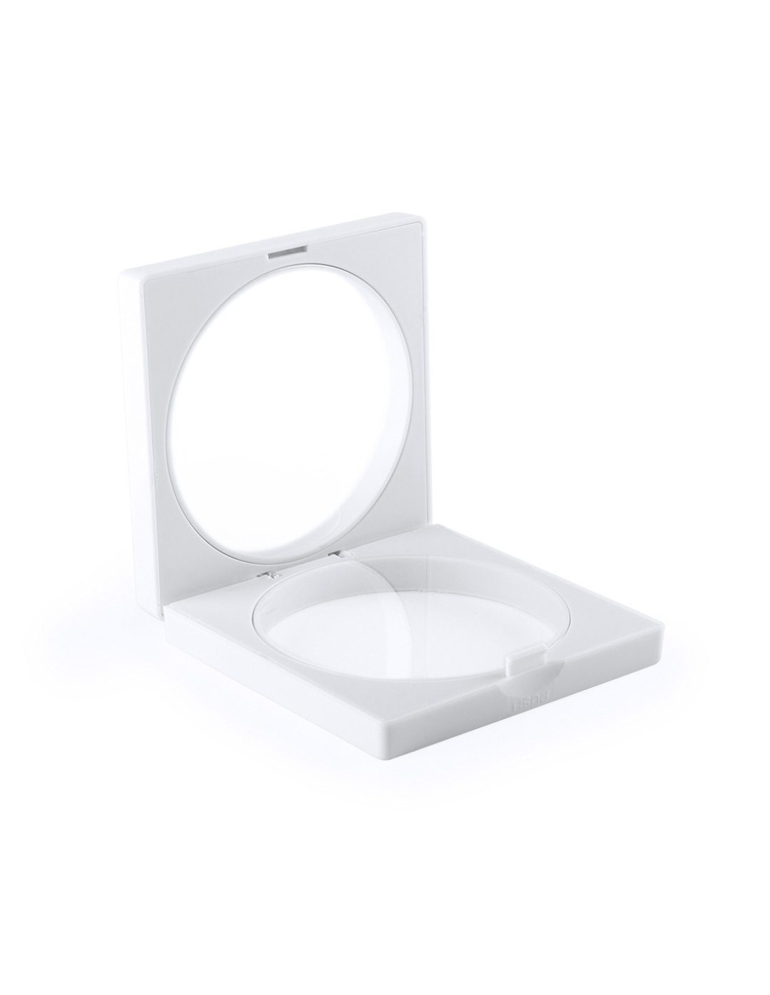 Estuche para memoria USB con ventana de film transparente, de atrevido diseño y elegante acabado en color blanco.