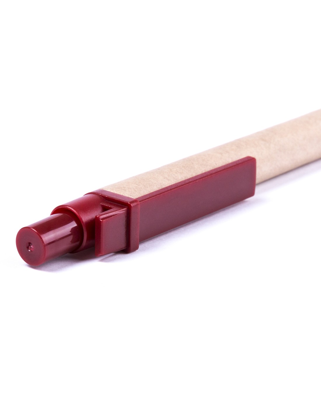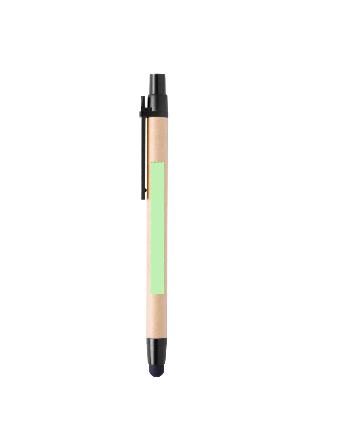 Bolígrafo puntero de mecanismo pulsador en original combinación de cuerpo en cartón reciclado de color natural y accesorios en vivos colores con...