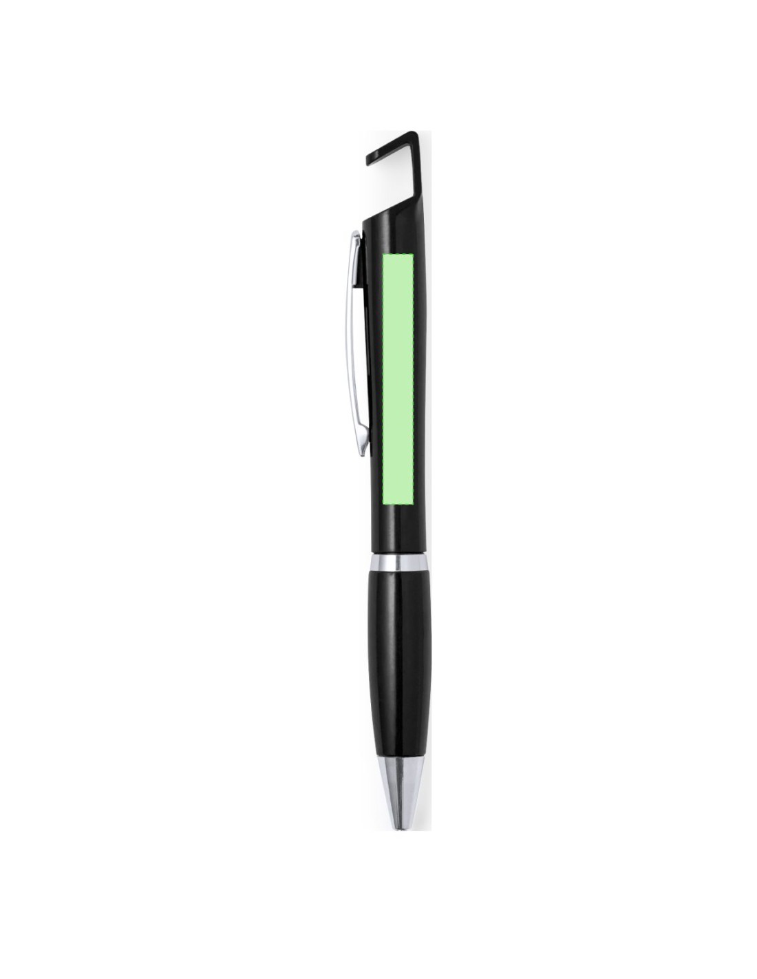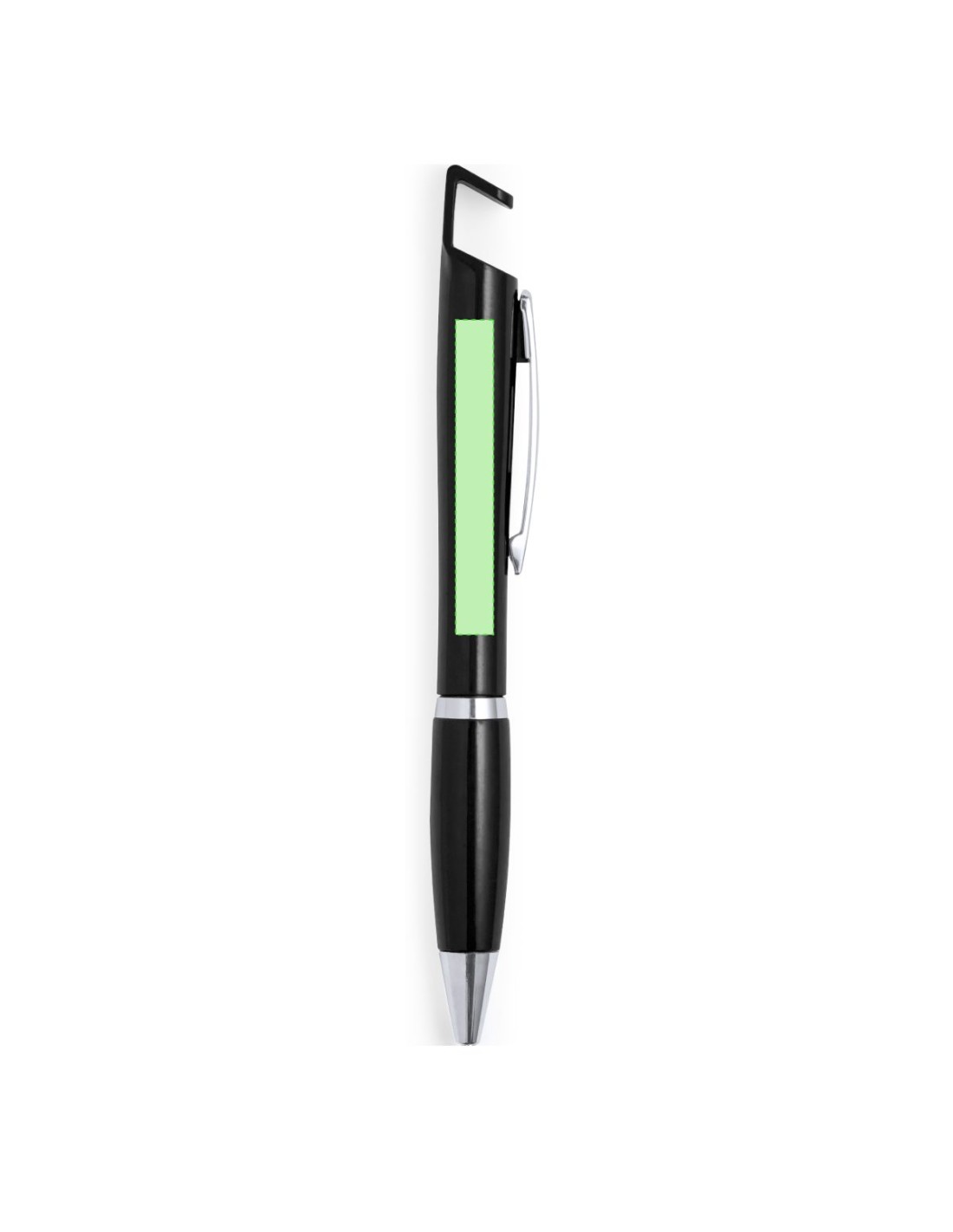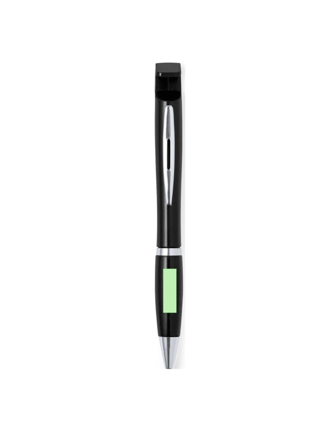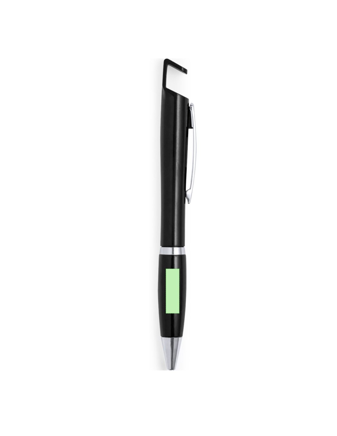 Bolígrafo con soporte para dispositivo móvil. De mecanismo pulsador y atrevido diseño bicolor con accesorios en color plateado y cuerpo de suave acabado en divertidos colores sólidos. Con original clip metálico troquelado a juego y cómoda empuñadura. Tinta azul.