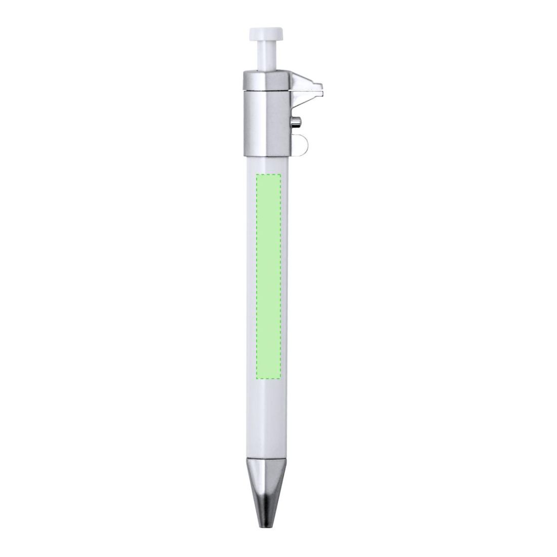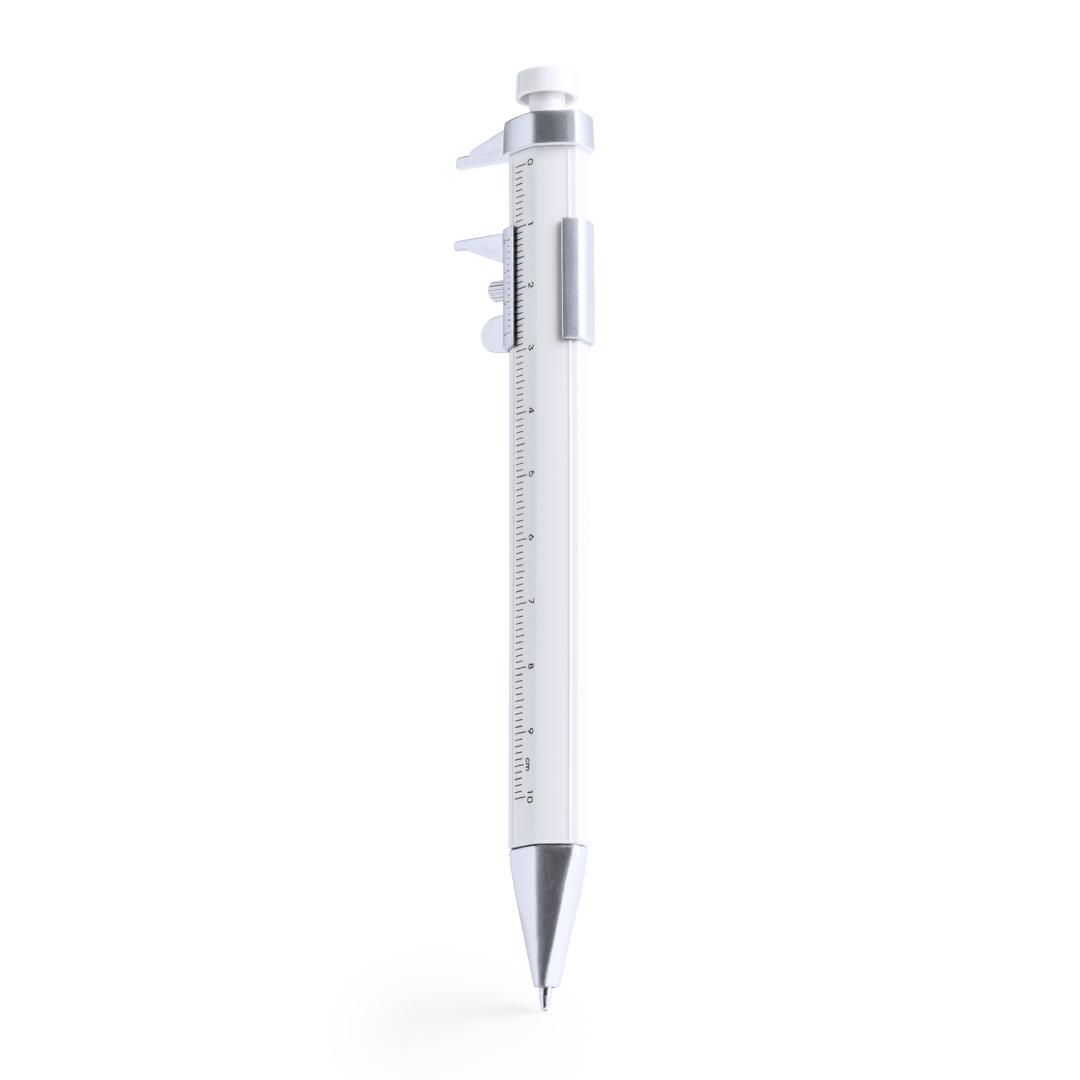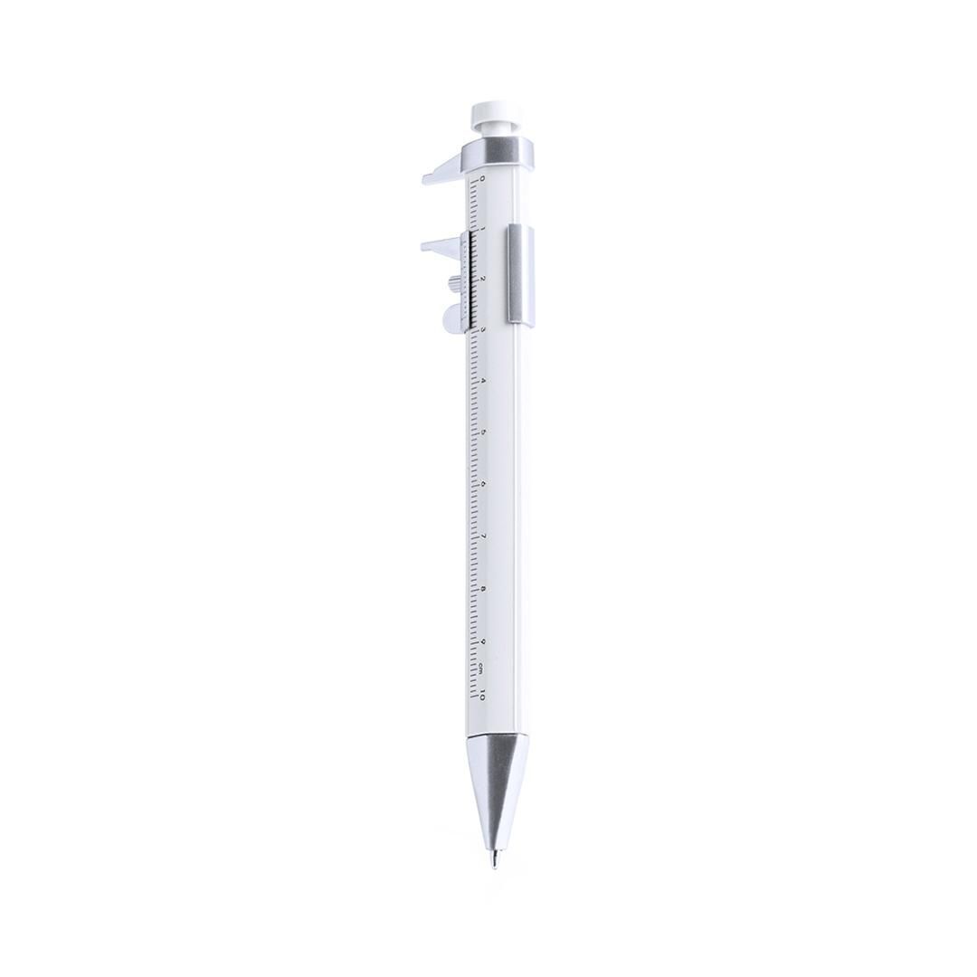 Bolígrafo pie de rey de mecanismo giratorio. Con regla integrada en cuerpo de 10cm. Tinta azul.