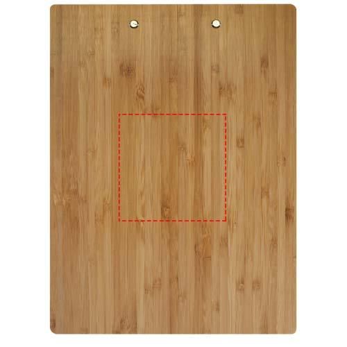 Práctico portapapeles de bambú. El clip para sujetar un trozo de papel está hecho de hierro y plástico PP. Tamaño: 31,2 × 22,4 × 0,4 cm.
