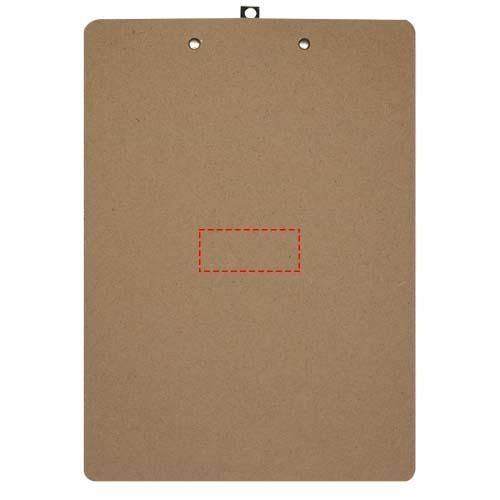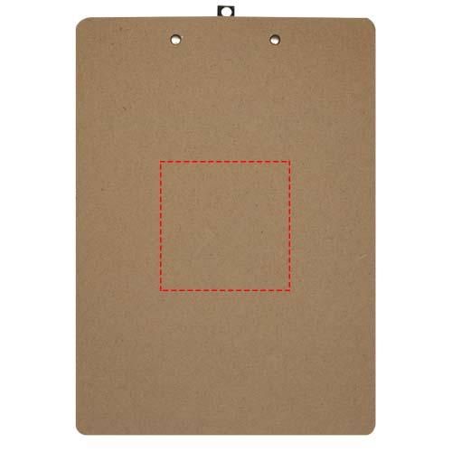 Práctico portapapeles fabricado en MDF (tablero de fibra de densidad media). El clip para sujetar un trozo de papel está hecho de hierro y plástico PP. Tamaño: 32 × 23 × 0,24 cm.