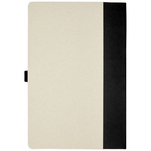 Set de libreta de referencia de tamaño A5 y bolígrafo. La libreta cuenta con 80 hojas con líneas (80 g/m²) hechas a partir de cartones de leche reciclados (hasta un 70 %), un lomo de papel de color y un soporte para bolígrafo. En el soporte, hay un bolígrafo con mecanismo de presión en el color correspondiente de la libreta. El bolígrafo tiene el cuerpo hecho del mismo material de cartón de leche reciclada y el botón, la pinza y la punta están hechos de plástico PLA coloreado. El bolígrafo cuenta con una recarga de negro en el interior. Los cartones de leche usados se recogen, clasifican, procesan y convierten en papel, por lo que los residuos se transforman en un producto útil.